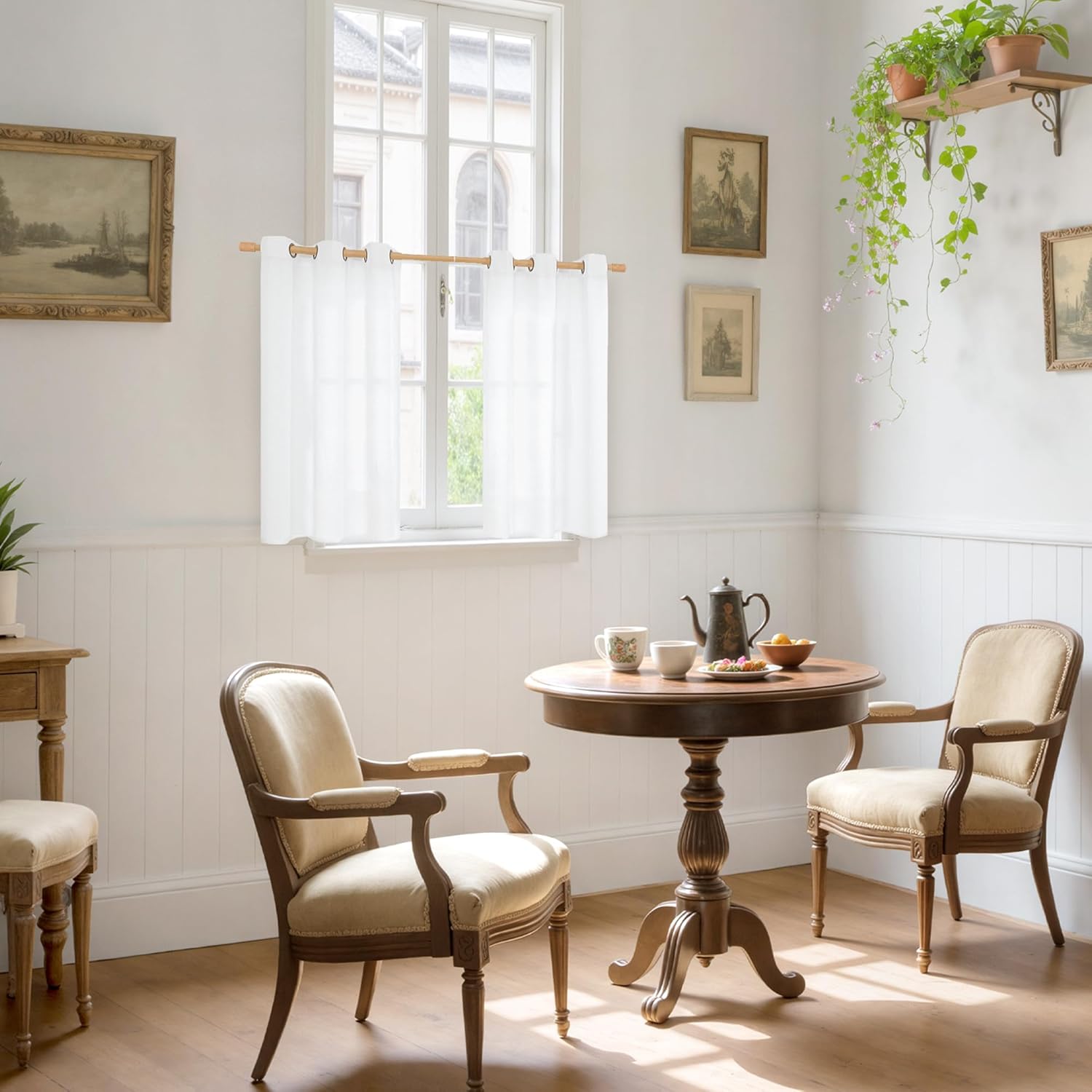 YoungsTex Small Linen Curtains 36 Inches Length for Kitchen - White Light Filtering Drapes with Bronze Grommet Light Filtering for Cafe/Half Window Short Curtain Decorative, 34 x 36 Inch, 2 Panels