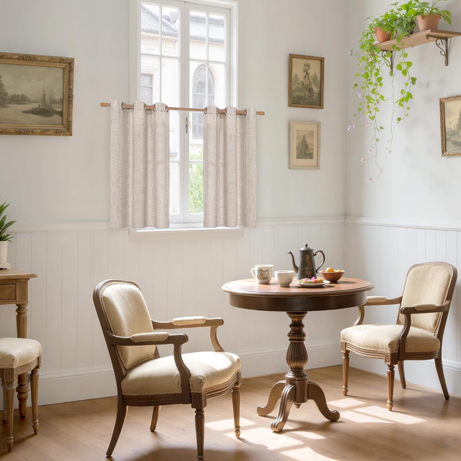 YoungsTex Linen Cafe Curtains 36 Inch Length with Grommet, Half Window Drapes Light Filtering Semi Sheer for Kitchen Bathroom Small Window, 2 Panels, 34 X 36 Inch