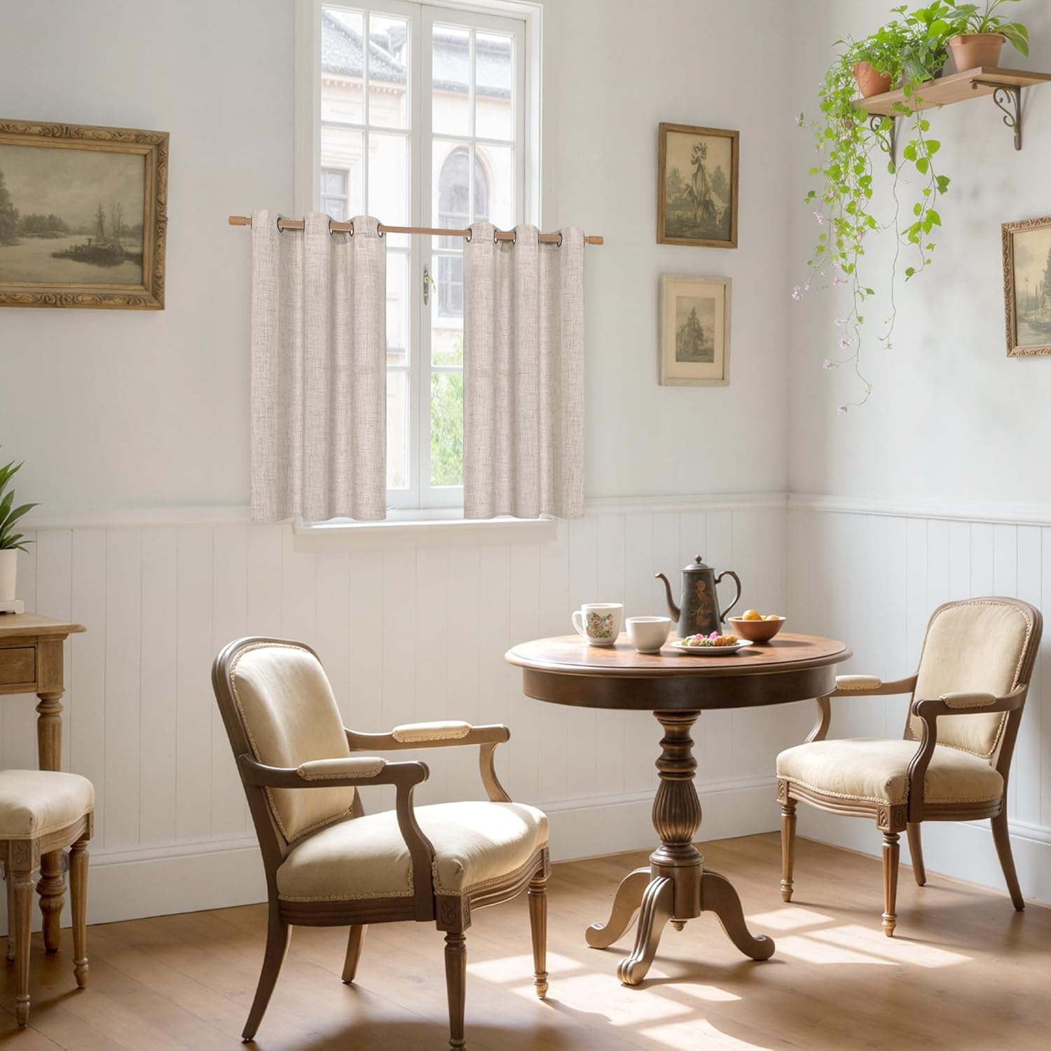 • Package: The package includes set of 2 natural linen curtain panels. Each linen textured curtain measure 34 inch wide and 40 inch length. Each light filter curtain has 6 vintage bronze grommets with 1.6-inch inner diameter, fit well with most rods. Easy to hang, and slide smoothly.