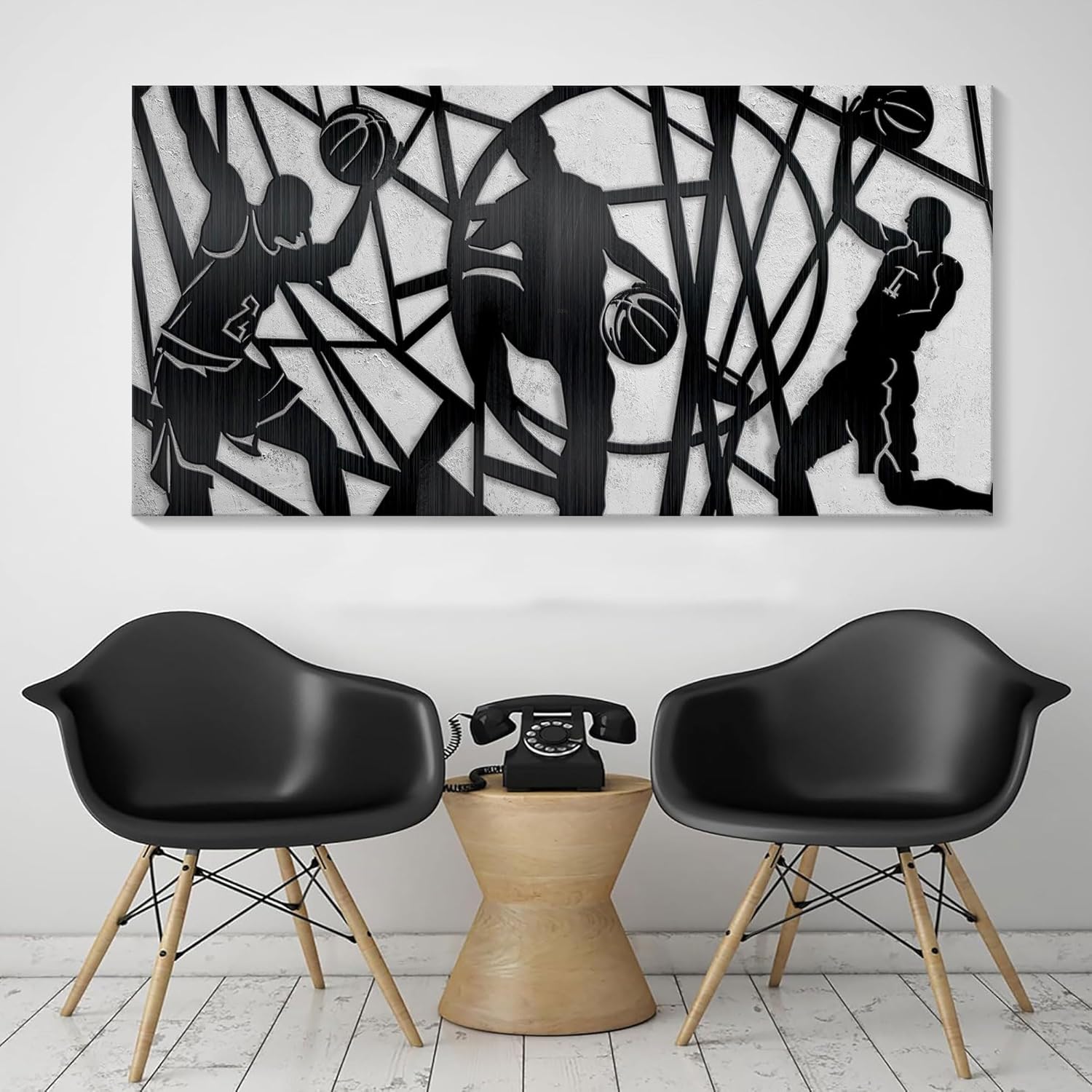 Large Sports Wall Art, Black and White Wall Art Basketball Poster Canvas Print Modern Pictures Paintings Ready to Hang Boys Teen Room Bedroom Home Office Gym Decor 29x58 IN