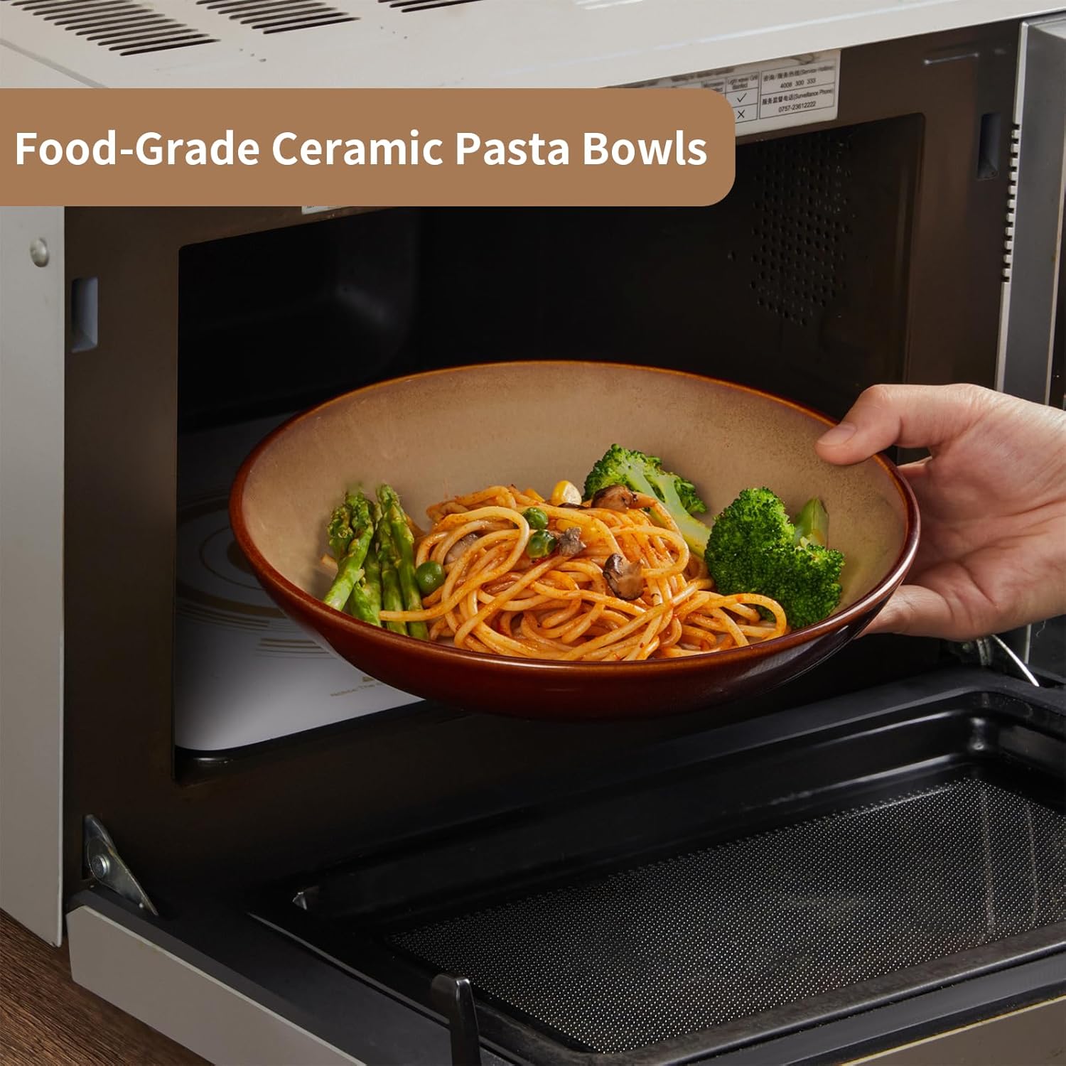 • Healthy and Excellent Value: These pasta bowls are made of degradable clay and fired at 2340℉ for 13.5 hours, making it free of lead and cadmium. NO need to worry about harmful substance leaching into your drinking and food. Twice fired premium ceramic make it sturdy, durable and chip-resistant for long use