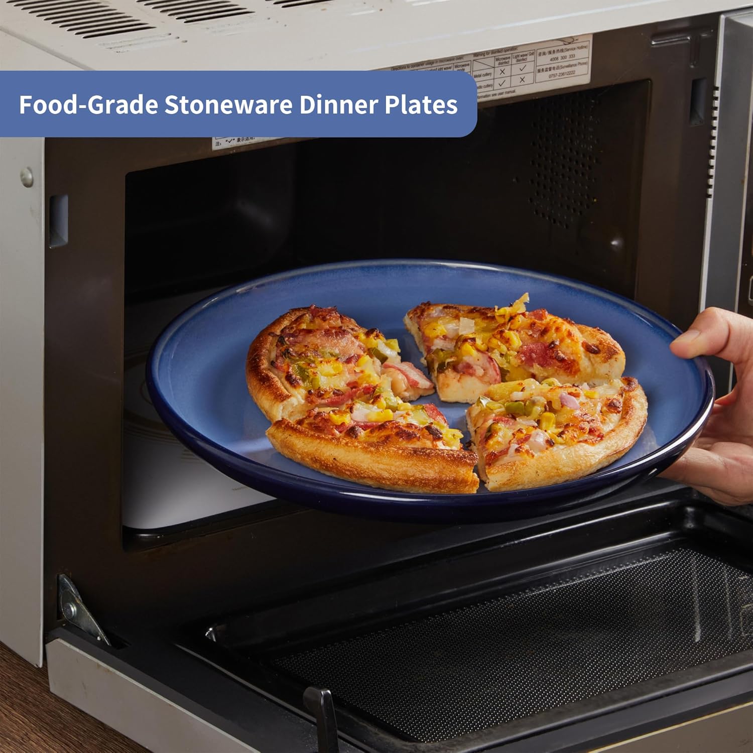 Blue Stoneware Dinnerware Set, 12 pcs Reactive Glaze Plates and Bowls Sets, Handmade Round Dishes Set for 4, Highly Chip and Crack Resistant Modern Plate Set