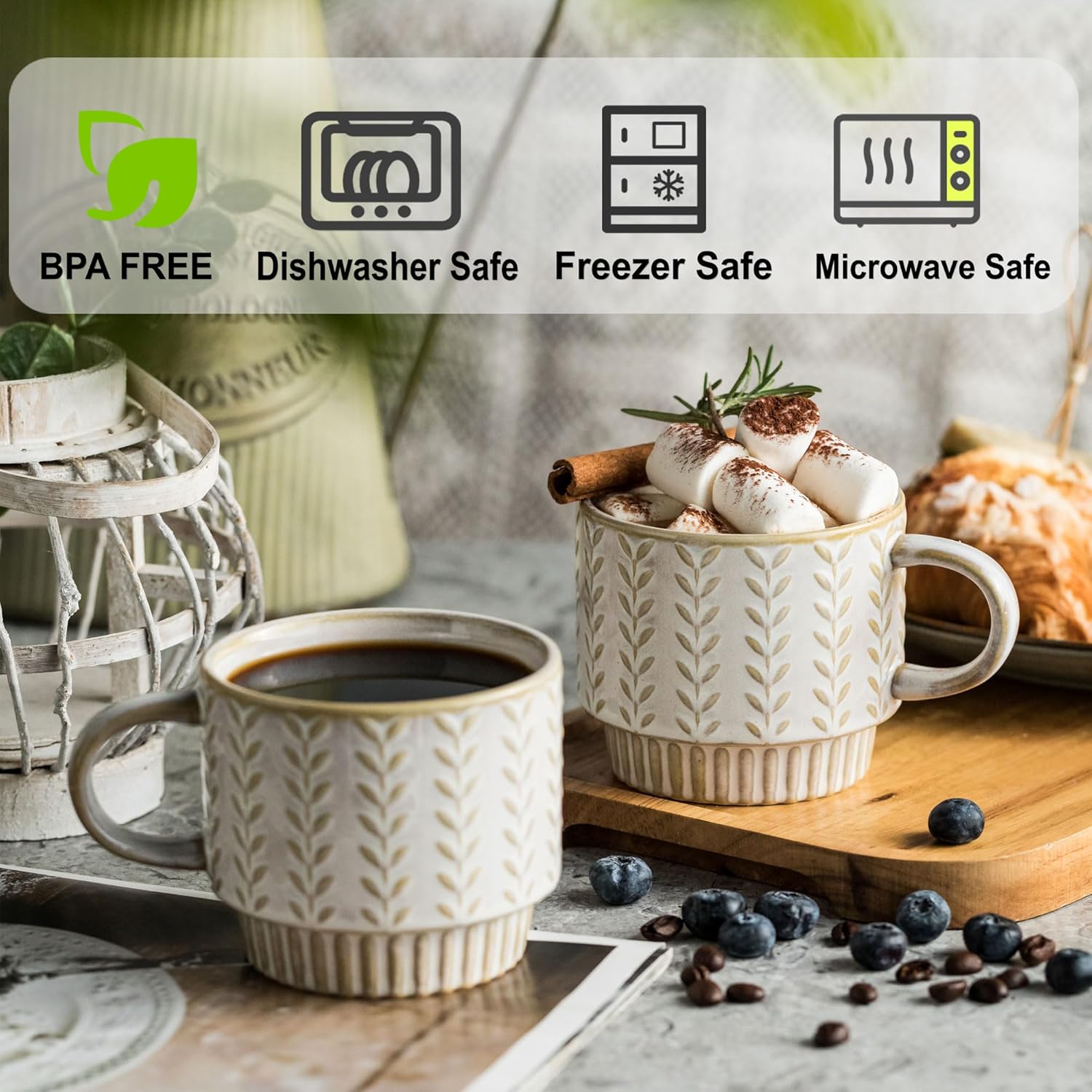 • Vintage & Distinctive Design: The delicate embossed pattern on the surface adds visual hierarchy and a sense of art, making every lift of the retro coffee mugs an enjoyable experience. It is not just a ceramic coffee cup, but also a display of life attitude, making every sip an unforgettable experience
