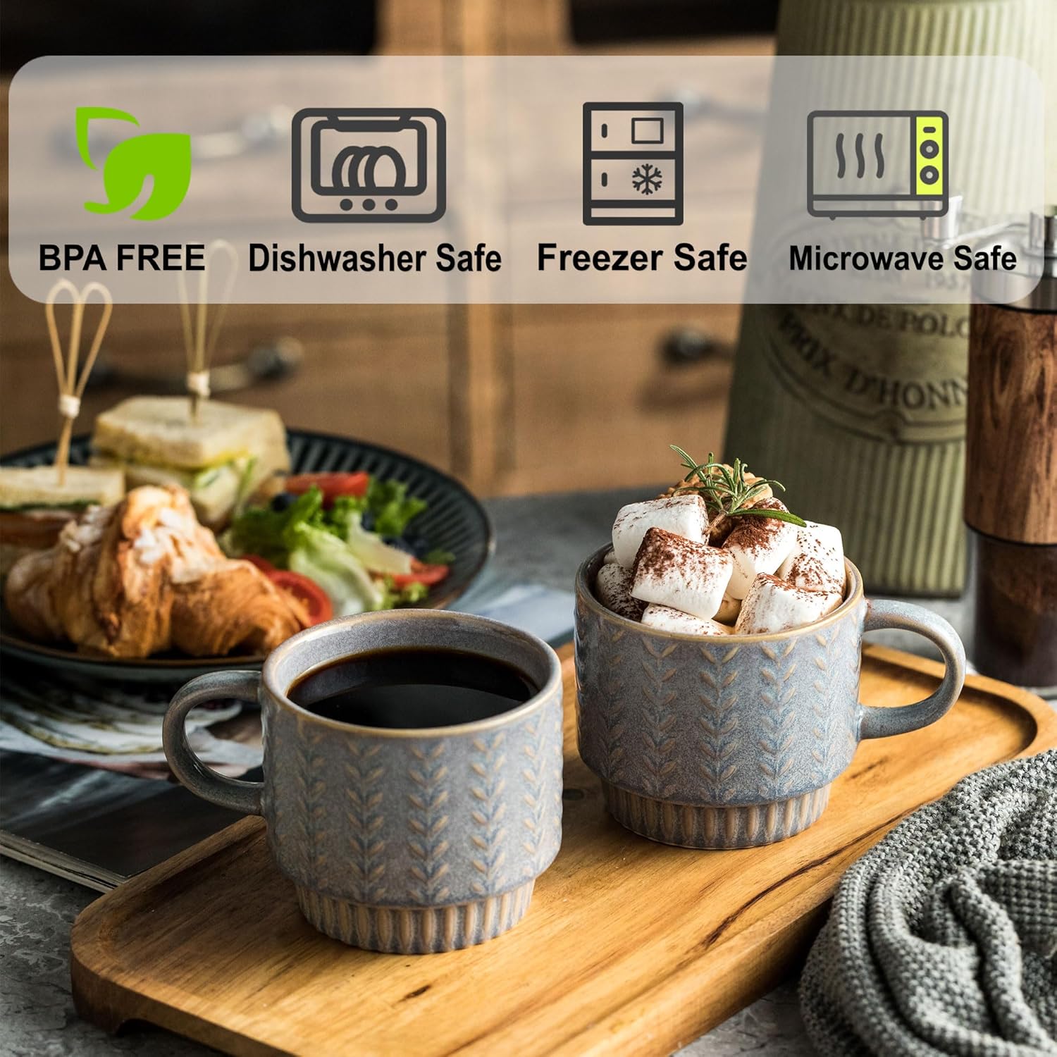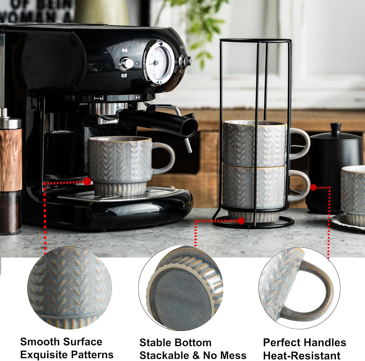 • Stackable & Save Space: The stainless steel stand can easily stack 4 coffee mugs together. Make your space more organized and tidy. Whether in the kitchen or dining room, stackable coffee mugs can easily save space and also easy to move in any space