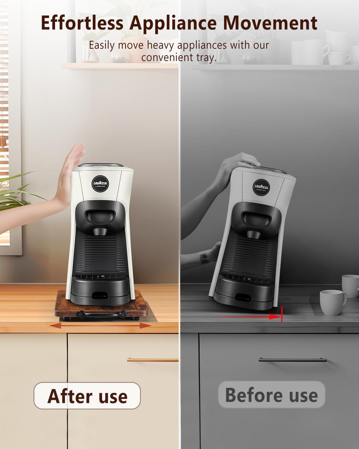 • Streamline Appliance Handling: Effortlessly move appliances with our Appliance Tray; equipped with appliance sliders for kitchen appliances; ideal as a coffee tray for countertop; ensures quiet, easy movement and a smoother kitchen experience