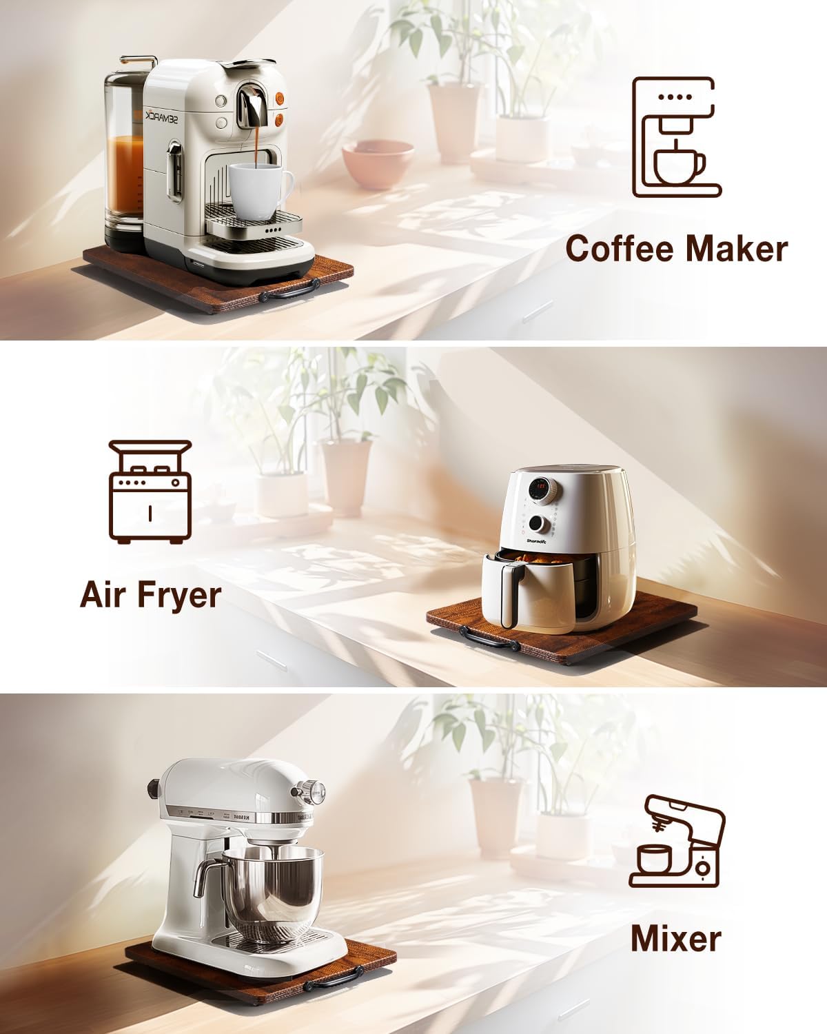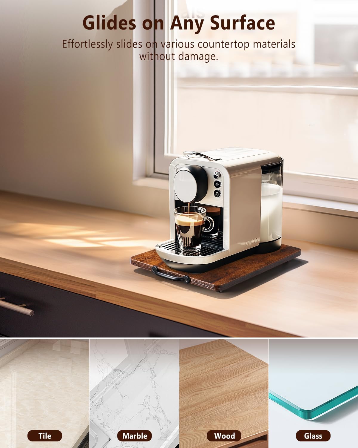 • Versatile Surface Compatibility: Suitable for marble, tile, wood, and glass, our Appliance Tray has a smooth, easy-to-clean finish; it's an ideal small appliance slider and countertop appliance slider, ensuring secure and smooth movement on any surface