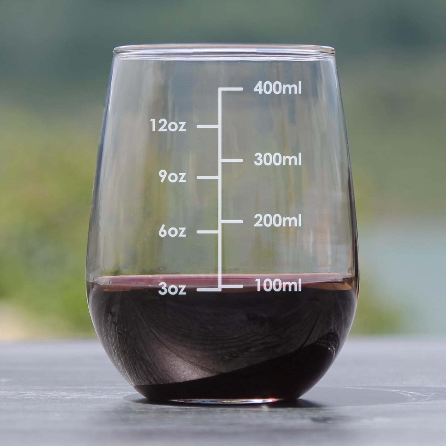 Bevvee Wine Measuring Cup - Stemless Wine Glass - Engraved Measurement Lines for Portion Control - Ounces and Metric - Large 17 Ounce