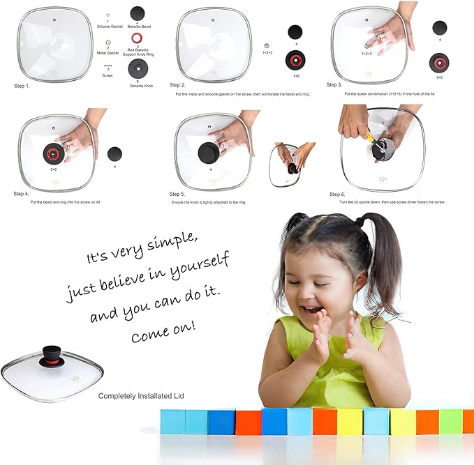 • [Assemble Steps] The lid and knob comes as unassembled, please find our pic. 9 and video to check the detailed assemble steps.