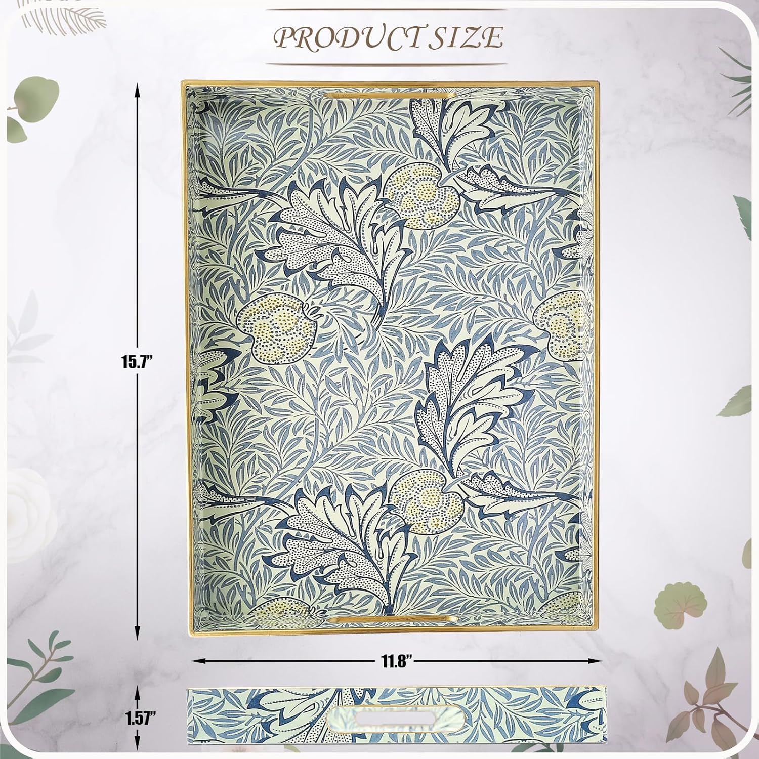 Rectangle Plastic Serving Tray with Handles, Elegant Decorative Tray for Coffee Table, Ottoman, Living Room, Kitchen, and Outdoor Use. 12"*16"*1.6" F