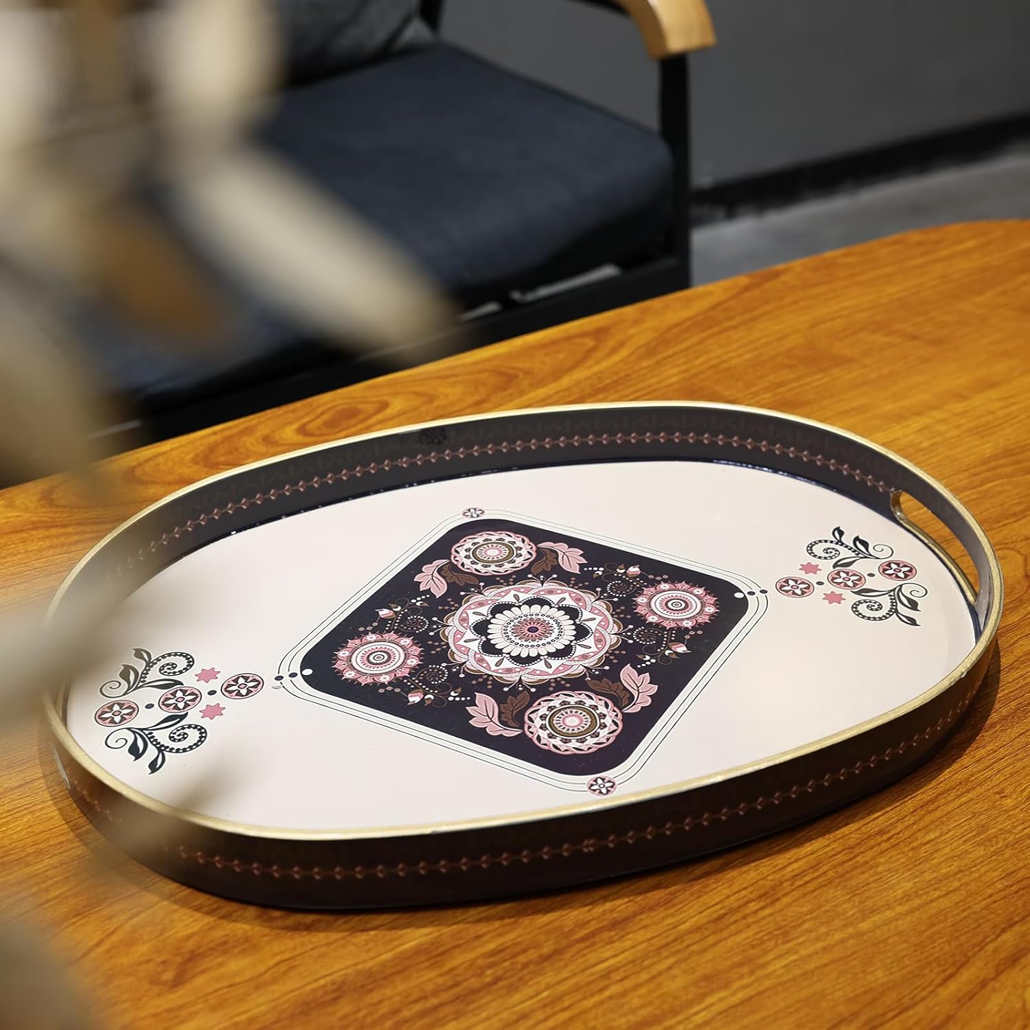 Oval Plastic Serving Tray with Handles, Elegant Decorative Tray for Coffee Table, Ottoman, Living Room, Kitchen, Outdoor Use. 10"*16"*1.4" C