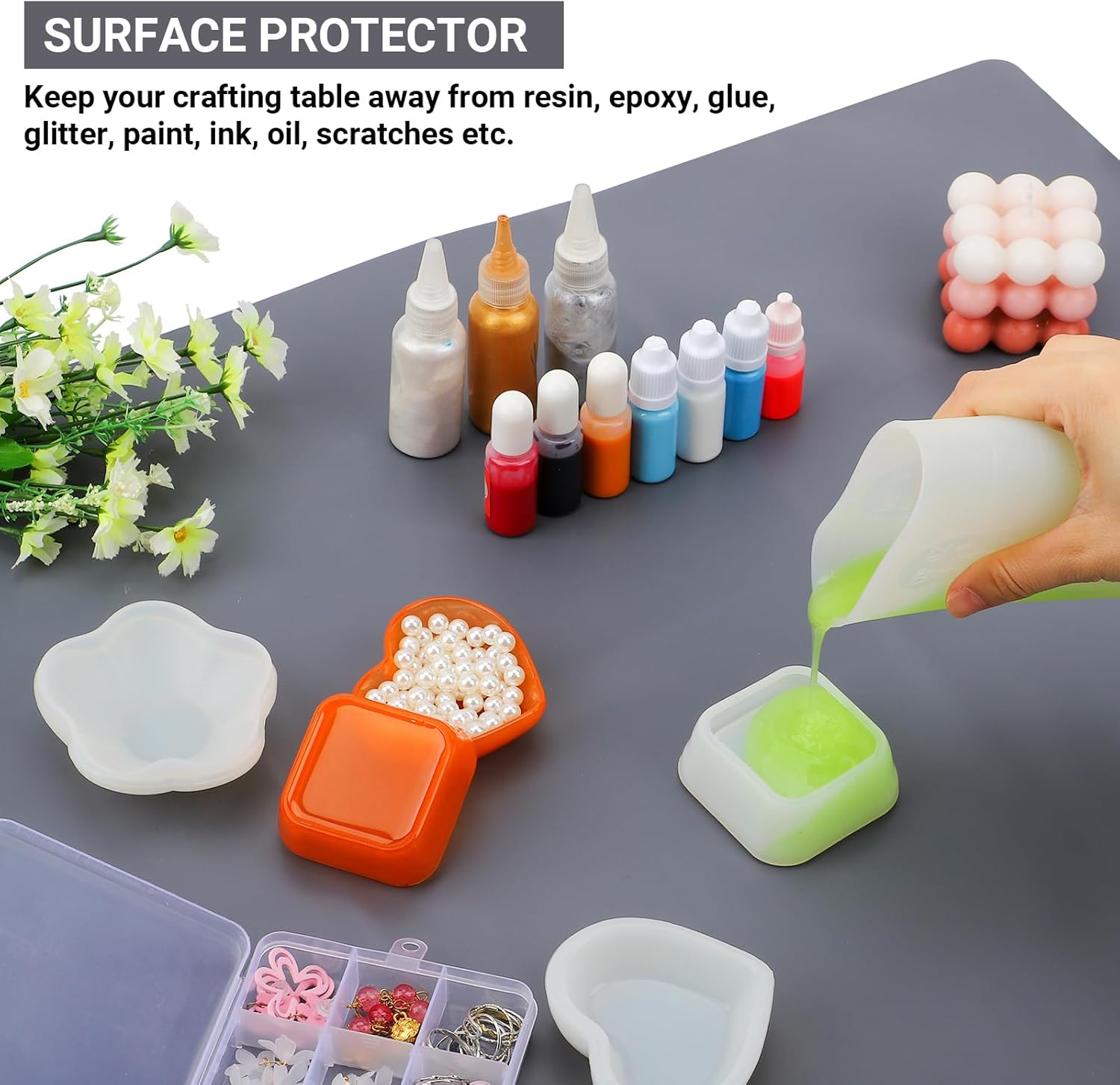 • WIDELY APPLICATION - The anti-slip pad is used for art & crafts projects (soaps/candles/wax making), glue up wood projects, epoxy resin, jewelry making, nail art, beadwork, clay/play the dough, pour film, tumbler, 3d projects, card making, scrapbooking, puzzles, sewing, gardening, furniture surface protection, trivet, drains, dining tables, dough, pet feeding. It can also be used as countertop protector, waterproof barrier, laptop computer mat, coasters, tray mat, heat insulated pads, etc.