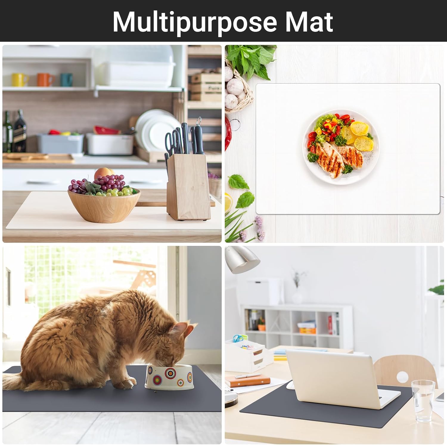 • SURFACE PROTECTOR - Counter mat could protect your coutertop against overspill, drips, water, stains, discolorations, scratches, burn, grease and keep your crafting table away from resin, epoxy, glue, glitter, paint, ink, oil etc. Put it under microwaves, air fryer, induction stove, toaster, espresso machine, oven among other appliances to protect their surface.