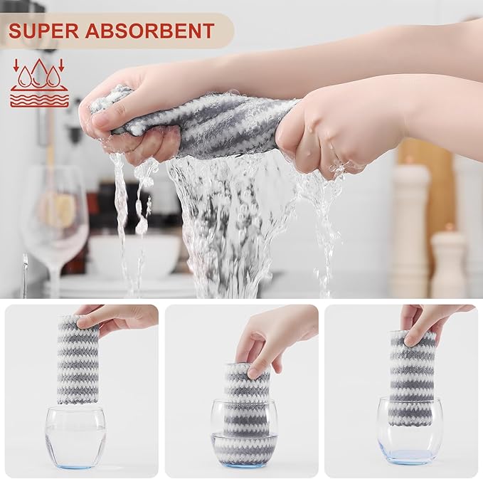 • Super Soft and Absorbent: Experience the luxurious softness of our dish towels. They are crafted with high-quality materials which feels soft and won't scratch your hands or any surfaces. Strong water absorption, easily absorb liquid and overflow, make the surface clean and dry.