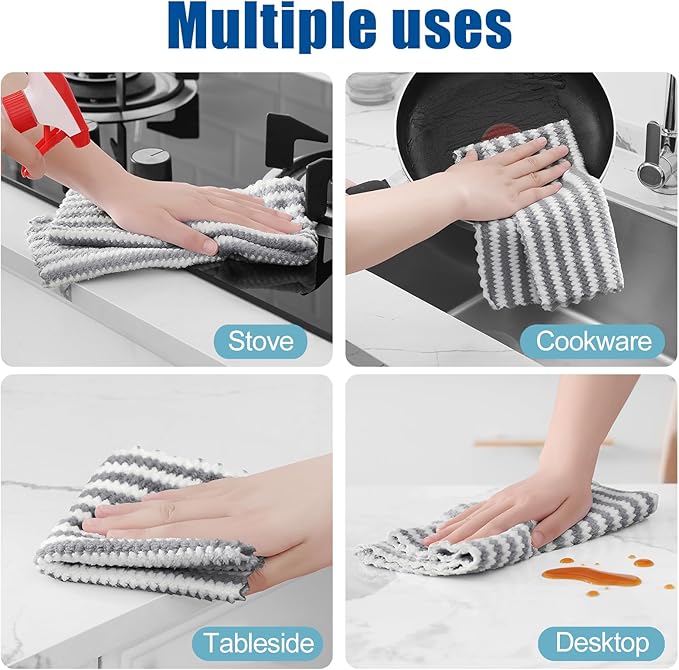 • Premium Material: These reusable cleaning cloths are made of premium microfiber coral fleece material, tightly stitched and designed to provide superior absorbency and durability, ensuring a no stripes and non-linting cleaning experience.