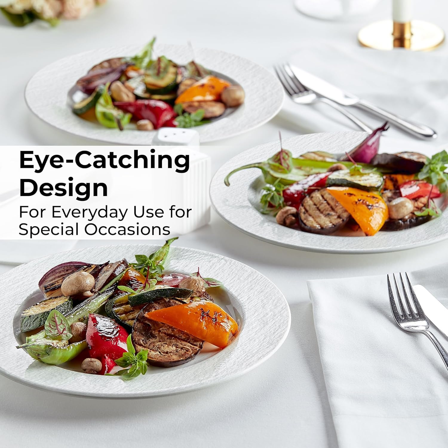 • π•π„π‘π’π€π“πˆπ‹π„ 𝐔𝐒𝐄 - This 4-piece ceramic plate set impresses with its elegant design and is ideal for serving a variety of dishes. Whether as pasta plates, cake plates, dessert plates or pizza plates. The ergonomic design of the kitchen plate set / ceramic crockery set ensures easy handling and can also be stacked neatly.