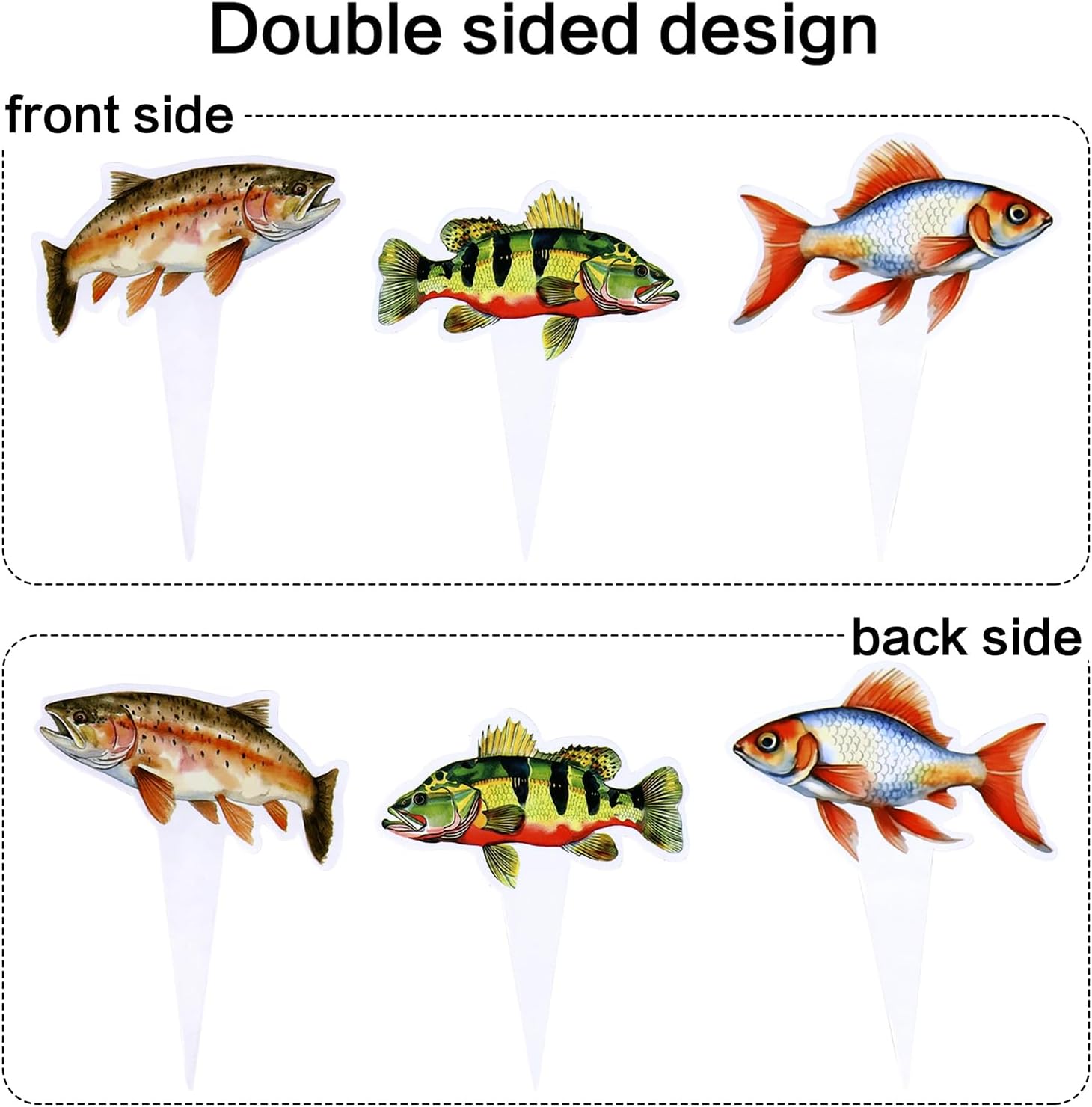 24pcs Fish Cupcake Toppers Go Fishing Theme Decorations Baby Shower Boys Girls Happy Birthday Party Tropical Party Cake Picks Under The Sea Decoration Supplies(two-sided)