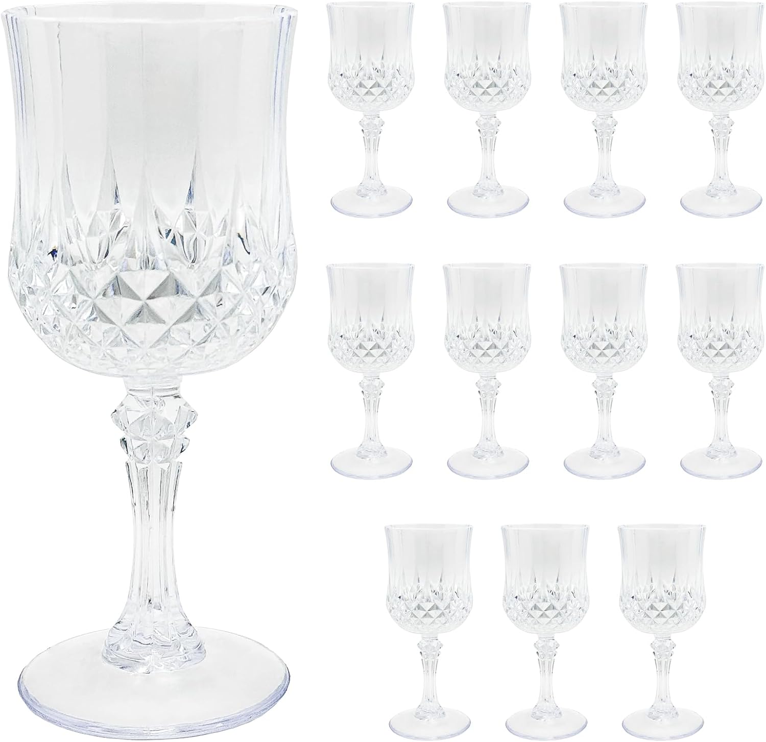 12 PCS Plastic Wine Glasses Clear,Reusable Plastic Wine Glasses,White Goblet Glass,Durable and Sturdy Cups Can Be Used for Various Parties Such as Weddings!