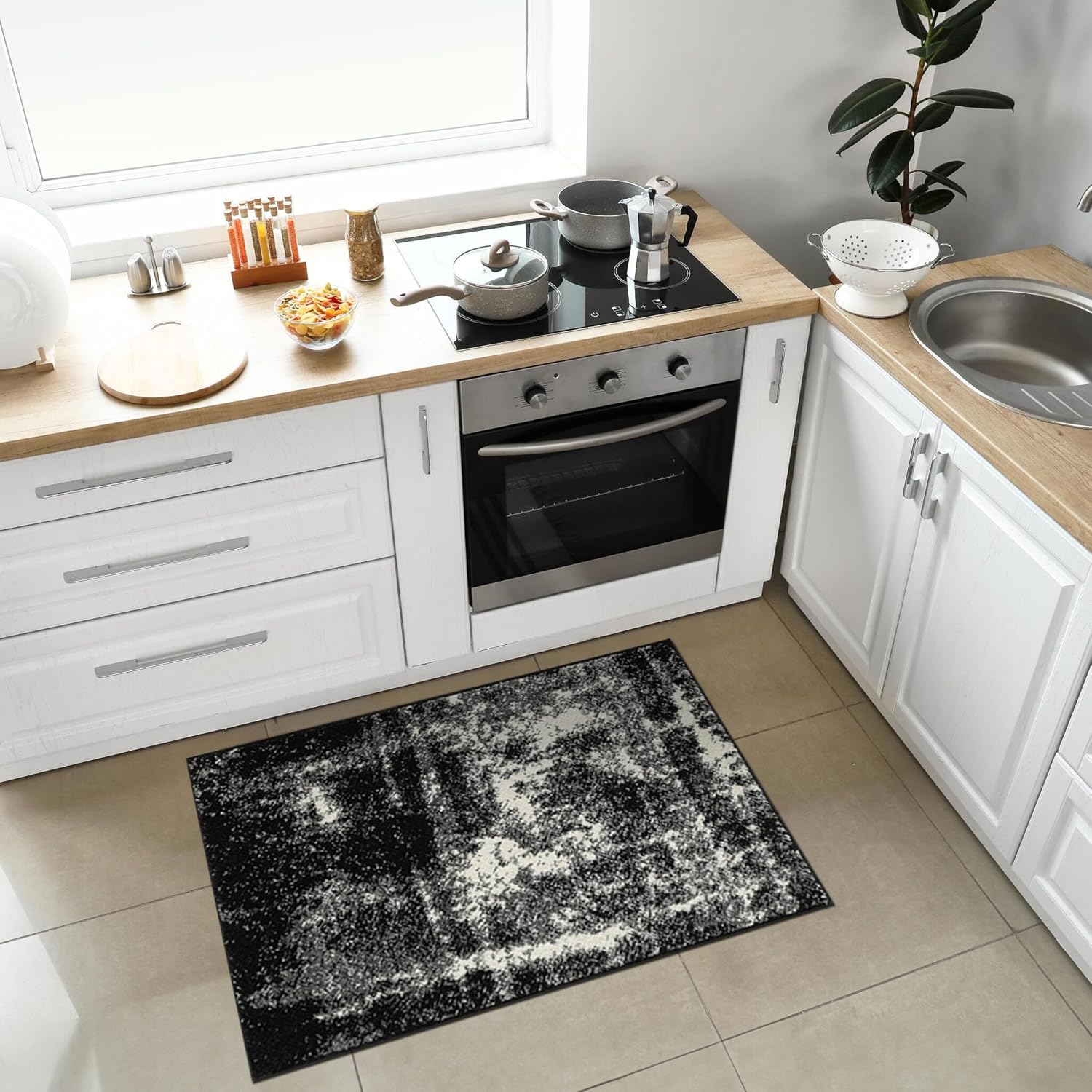 Keen Home Design Area Rugs - 2x3 Non-Shedding, Abstract Rugs for Kitchen, Living Room, Bedroom, Dining Room, Entryway - Size: 2' x 3', Abstract Black