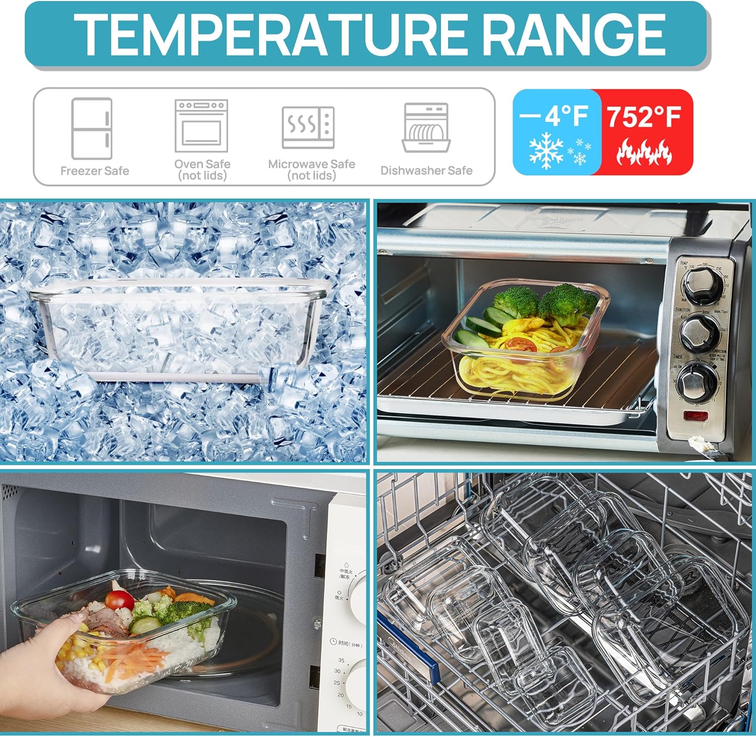 • 【MULTI-APPLIANCE DURABILITY】Oven-safe borosilicate glass withstands -20°C to 400°C (-4°F to 752°F) for seamless transitions from freezer to oven. Microwave compatible (lid removed), dishwasher-friendly, and freezer-ready—built to streamline kitchen workflows.