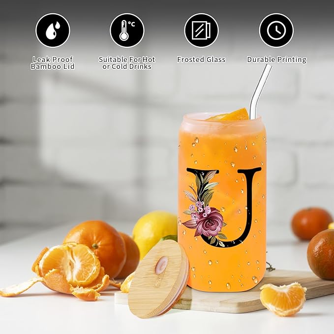 • Personalized Elegance: Elevate your beverage experience with our monogrammed 16oz glass drinking cup, featuring a bamboo lid and straw. Each cup is meticulously customized with one of the 26 letters, making it a perfect gift that reflects personal style and sophistication.