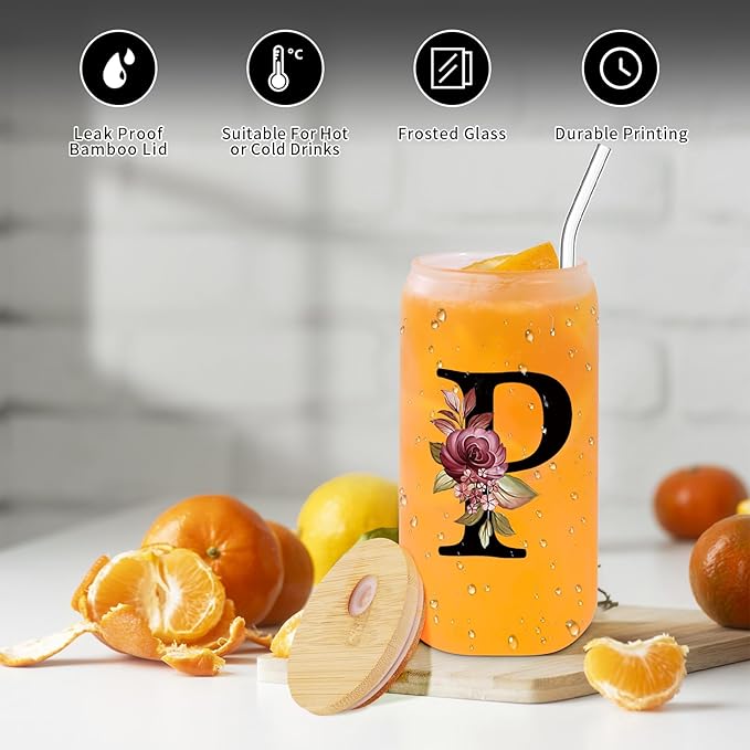 • Personalized Elegance: Elevate your beverage experience with our monogrammed 16oz glass drinking cup, featuring a bamboo lid and straw. Each cup is meticulously customized with one of the 26 letters, making it a perfect gift that reflects personal style and sophistication.