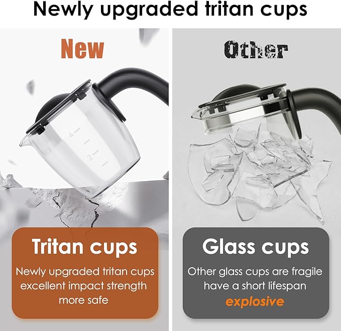 • Durable Tritan Cup: Compared with ordinary glass cups, we come with high-quality, BPA-free Tritan cups, which are shatterproof, safe, and lightweight to maintain the pure taste of coffee in daily use. Plus, the easy-pour Tritan cup has clear graduation markings to deliver the perfect amount every time