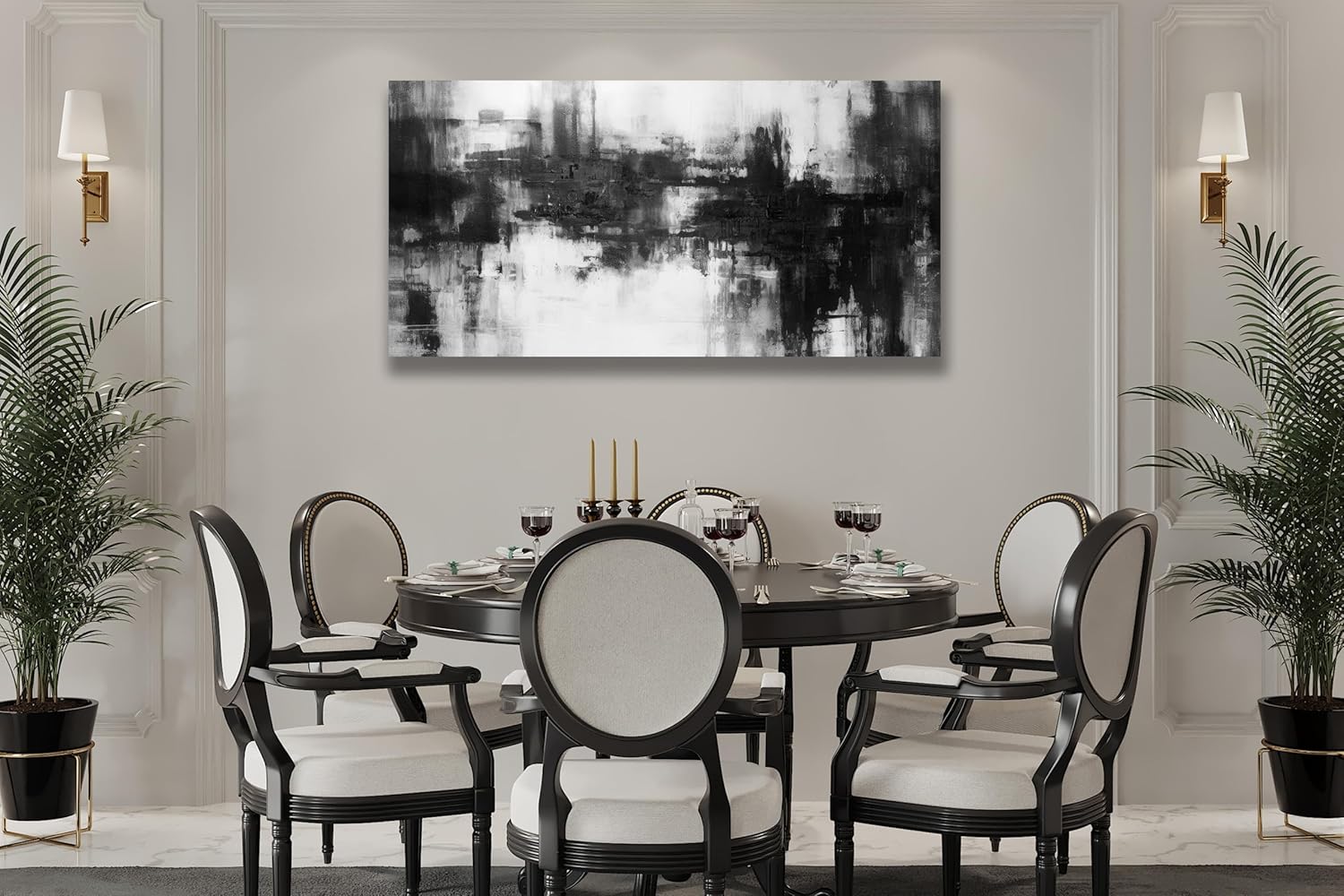 VHMING Black Abstract Wall Art Decor Black and White Painting Pop Culture Wall art Rock Room Decor Art Canvas Wall Decoration Artwork for Bedroom Home Office Dining Room Decoration 29"x58"