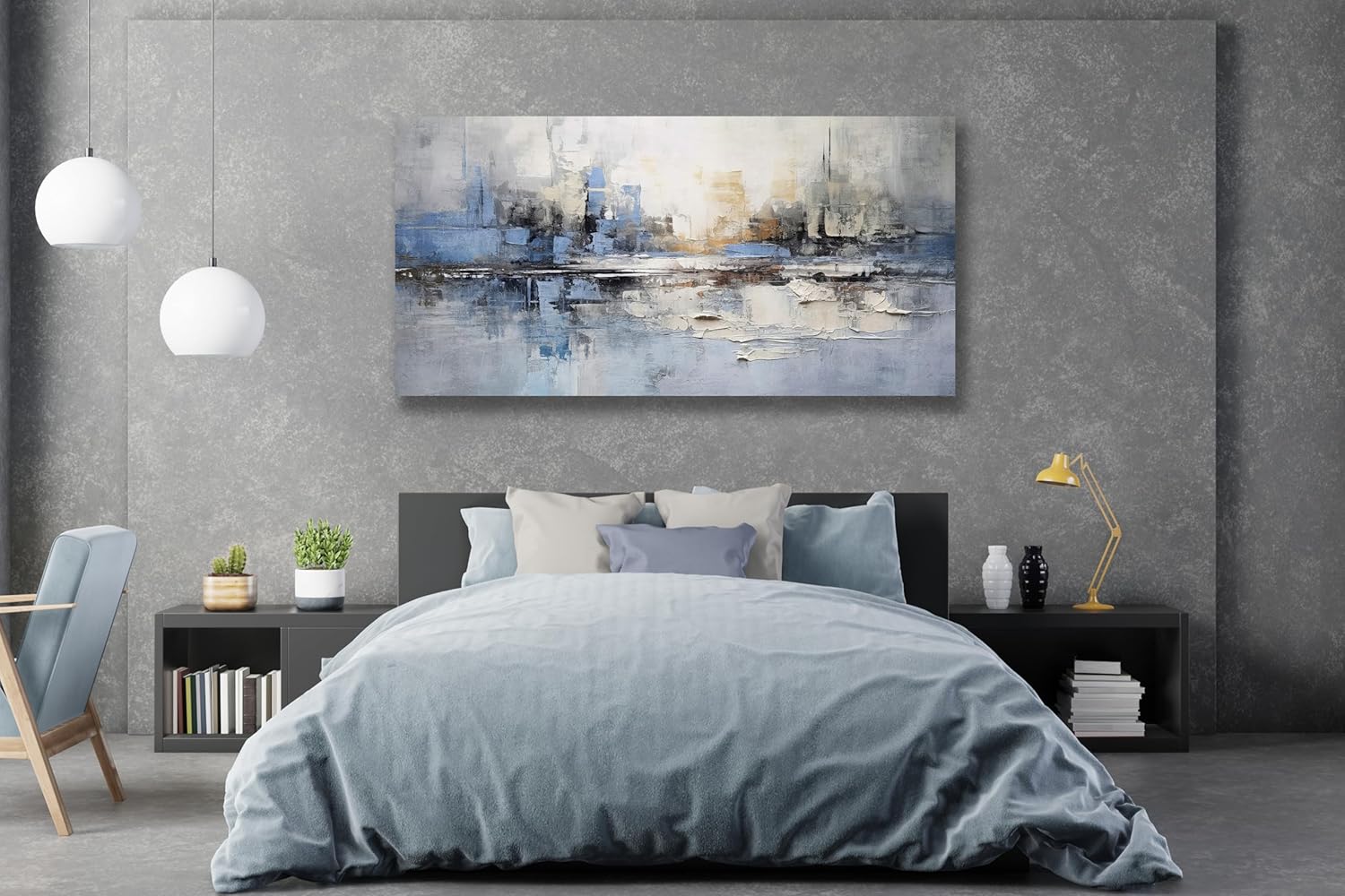 VHMING Abstract Wall Art Wall Decor Blue and Gray White Modern Canvas Wall Paintings Abstract Artwork for Living Room Bedroom Bathroom Office Home Decor Can Be Hung Directly 20"x 40"