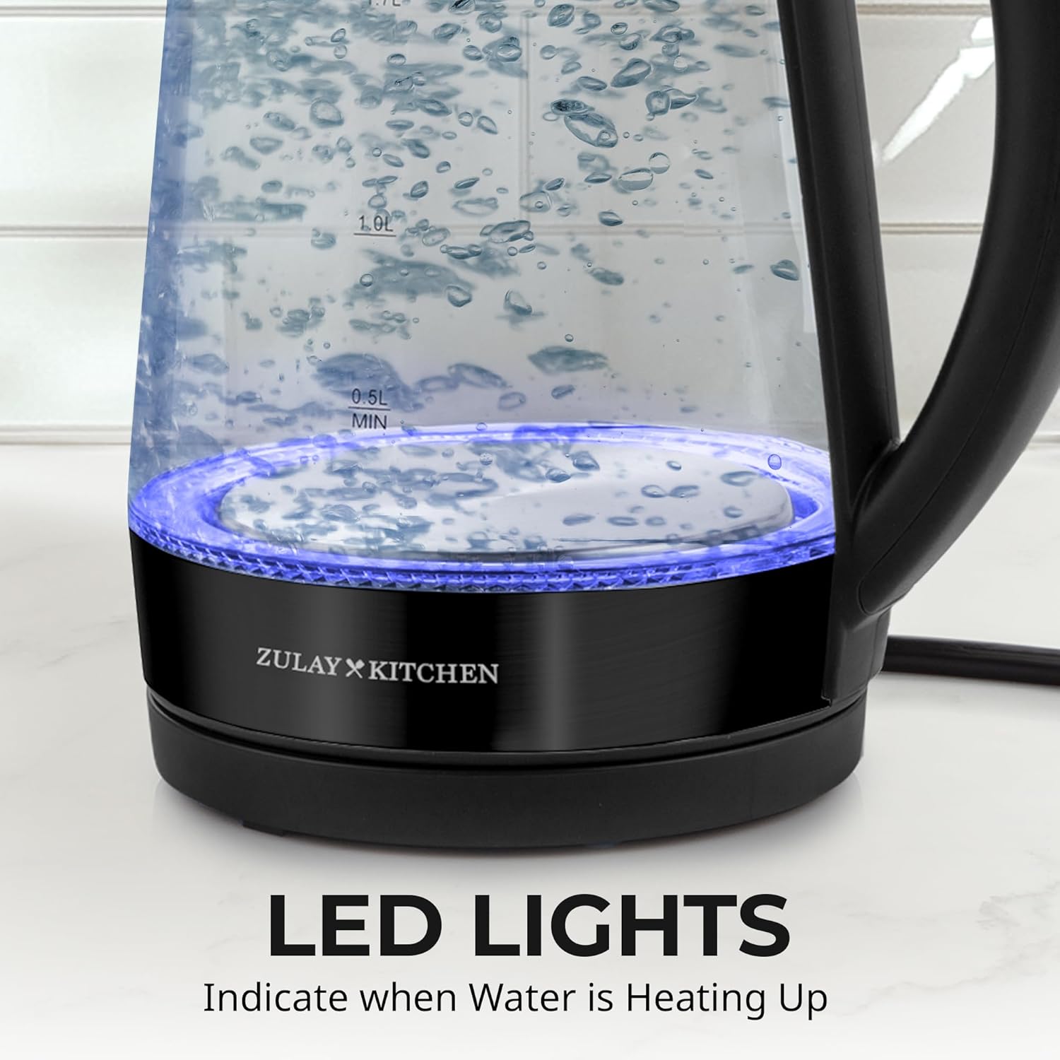 Zulay Kitchen Fast Boiling Electric Water Kettle - 1.7L, 1500W, Auto Shut-Off for Overboil & Boil Dry Protection, Cool-Touch Handle, 360° Base - Rapid Teapot Boiler For Coffee & Tea - Black Metallic