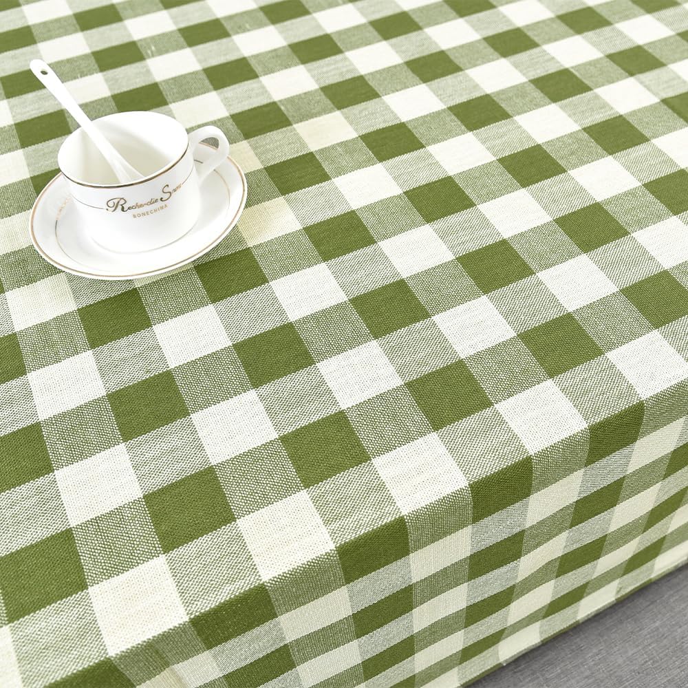 Gingham Tablecloth Rectangle Table Cloth Heavy Duty Cotton Checkered Table Cover for Spring Picnic Kitchen Dining(C-Sage Green, 52x120 inch)
