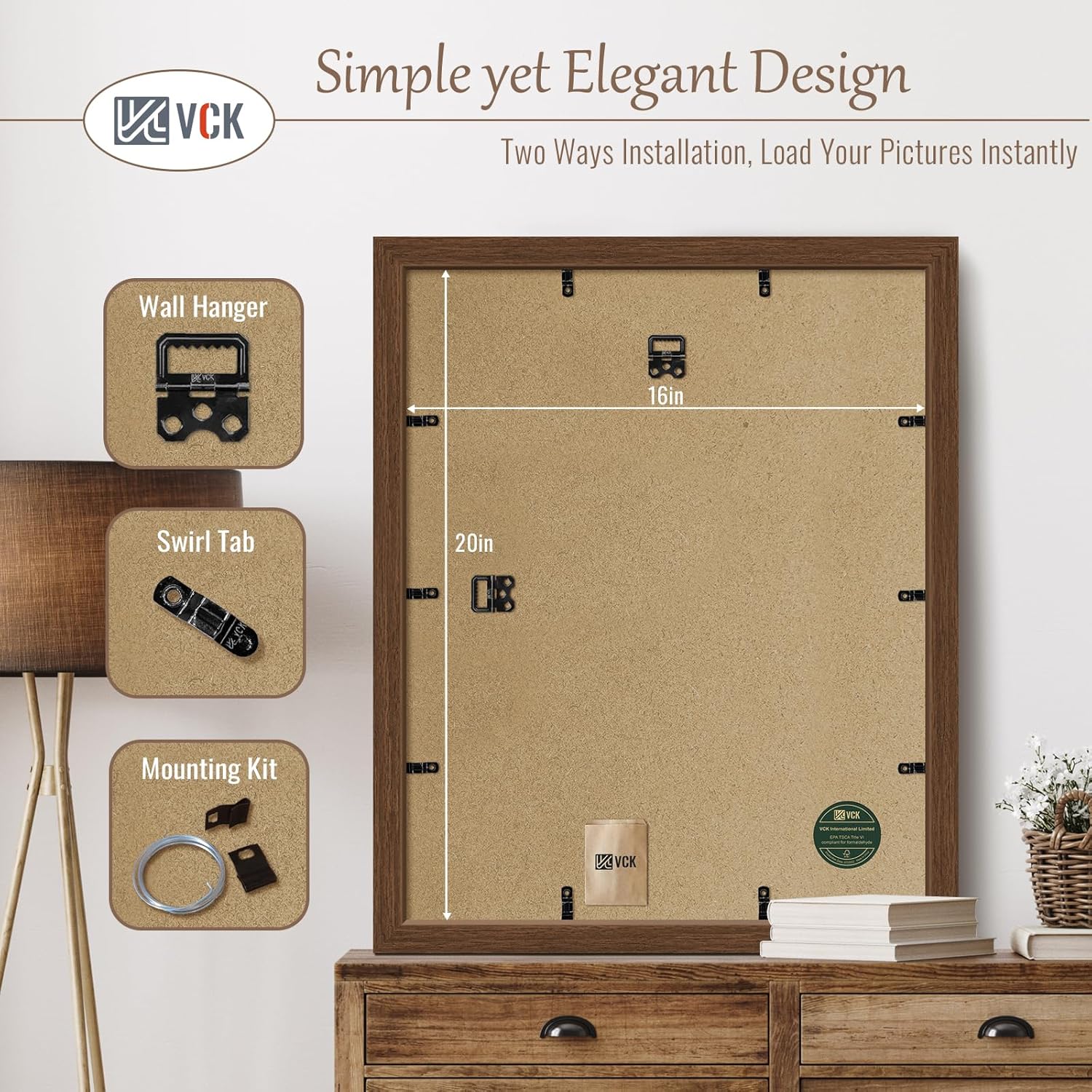 VCK 16x20 Picture Frames for Wall 5 Pack, Brown Wood Poster Frame, Exclusive Wood Grain, Wall Hanging