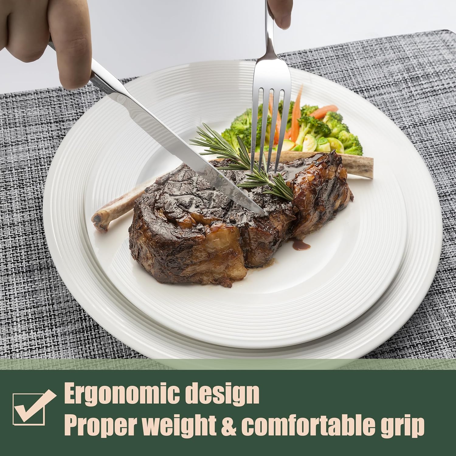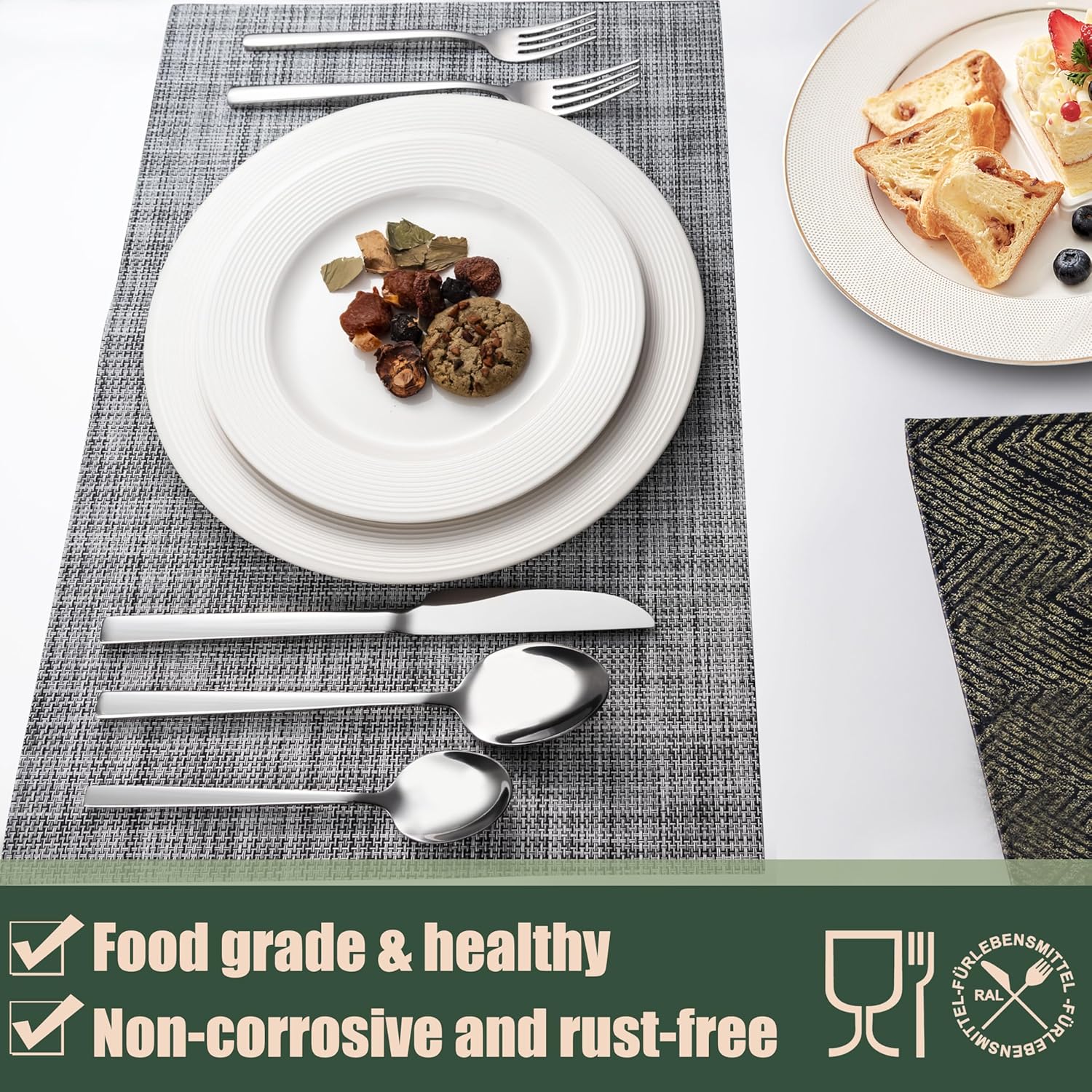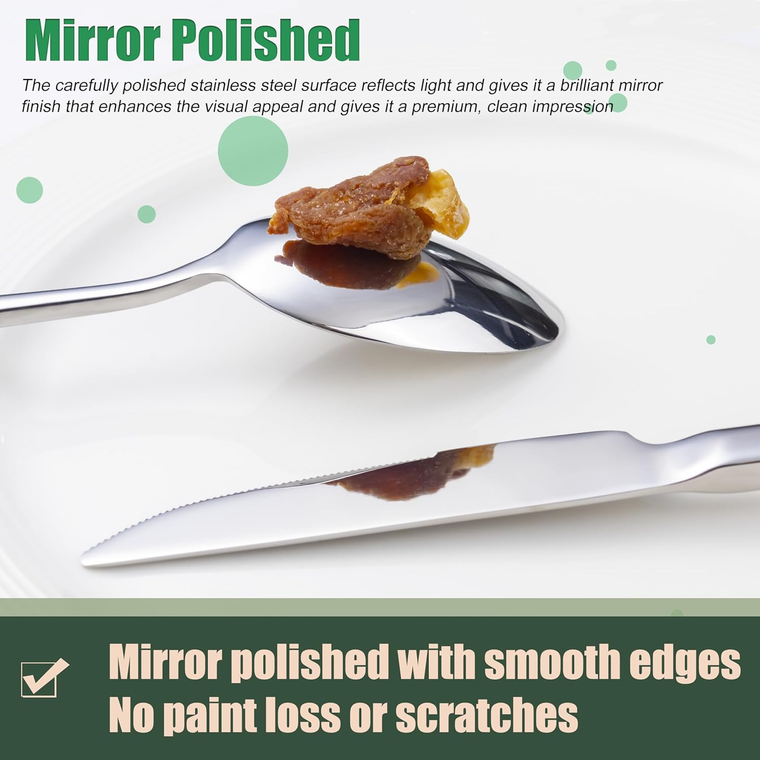• 【Excellent Quality】The flatware set is crafted from premium stainless steel, sturdy and durable, not easily bent and rusted. Thick but not bulky, well balance.It is the ideal choice for your tableware set.