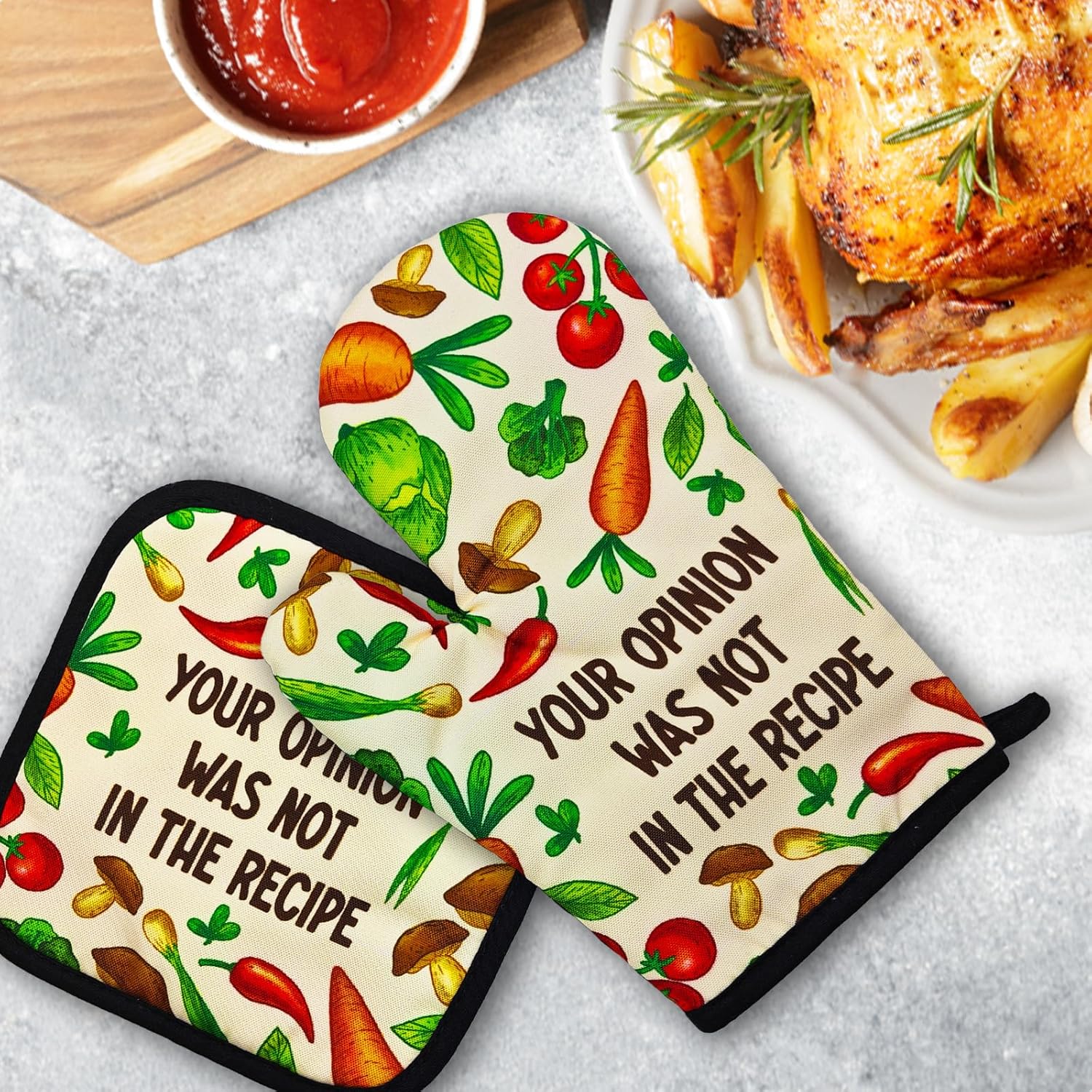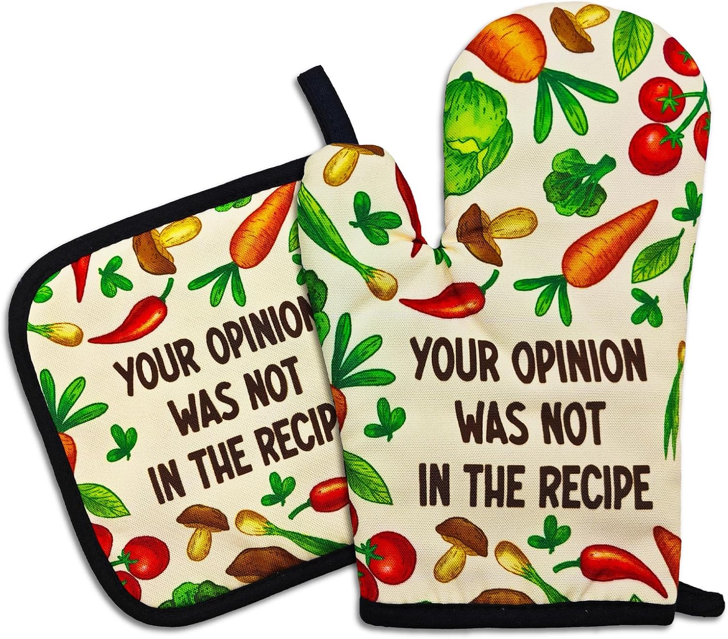 Funny Oven Mitts and Pot Holders(Set of 2) Your Opinion was Not in The Recipe Heat Resistant Mitt with Hanging Loop Cook Essentials Accessories Sweet Housewarming Gifts for Chef Hostess Mom