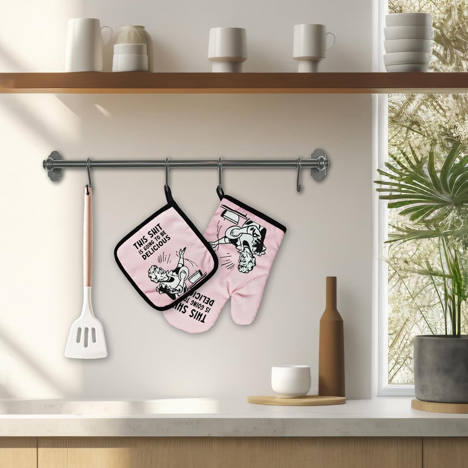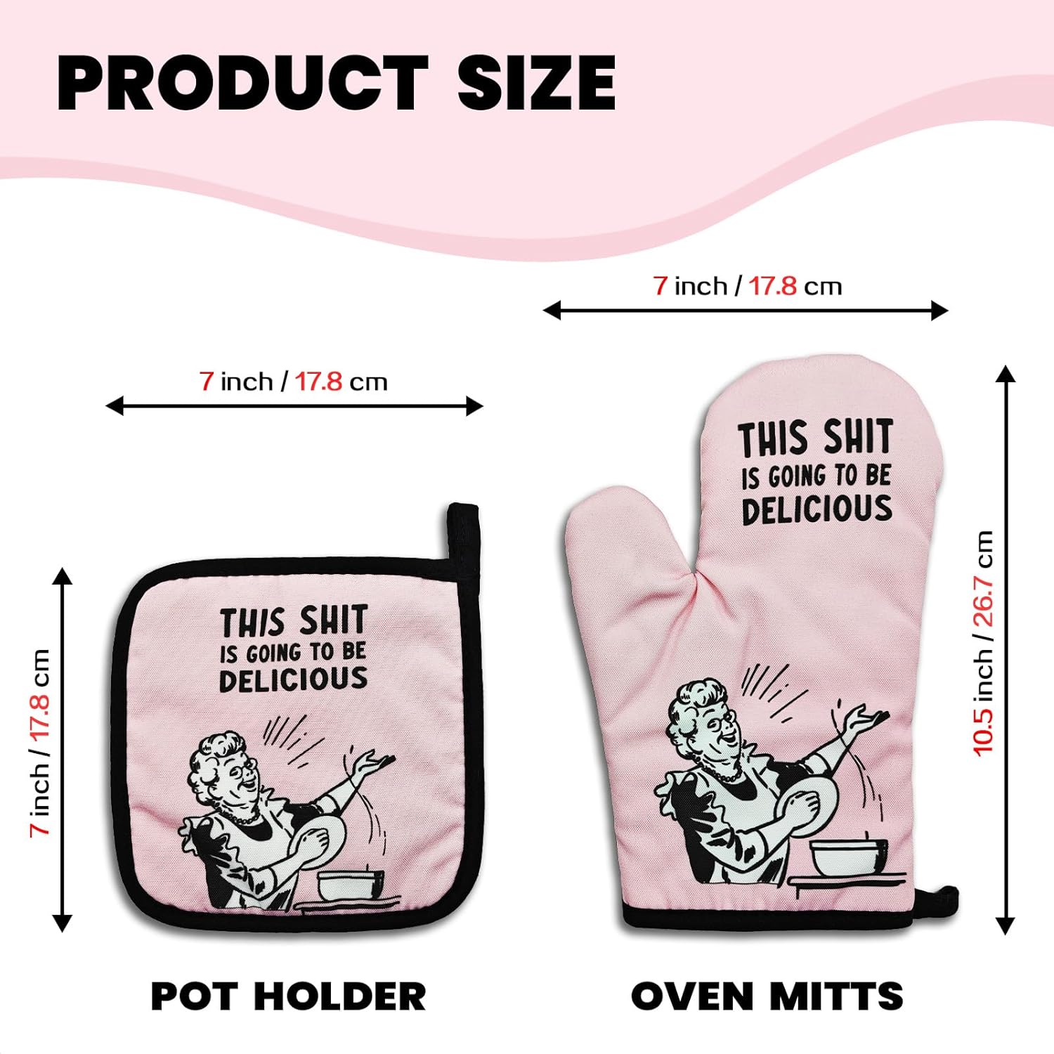 Funny Oven Mitts and Pot Holders Set This Sxxt is Going to Be Delicious Heat Resistant Mitts Adult Humor Silicone Non-Slip Oven Mitts Funny Kitchen Decor Gifts for Women Housewife Friend