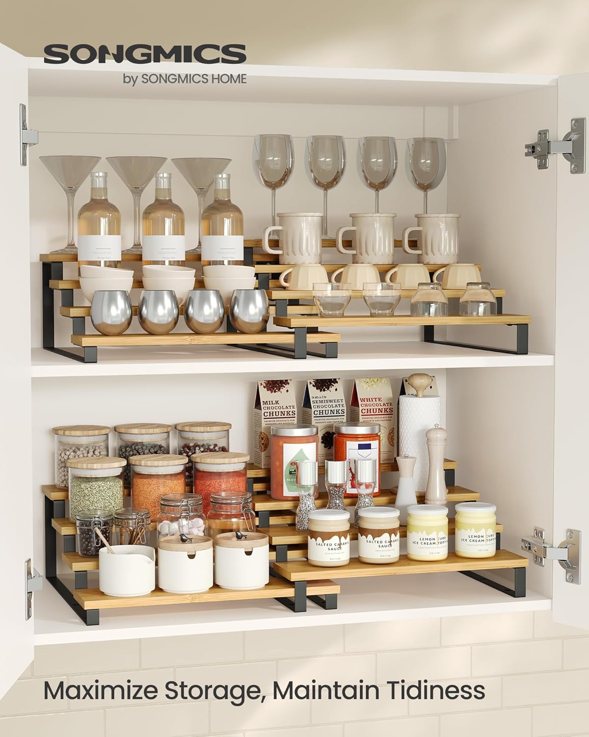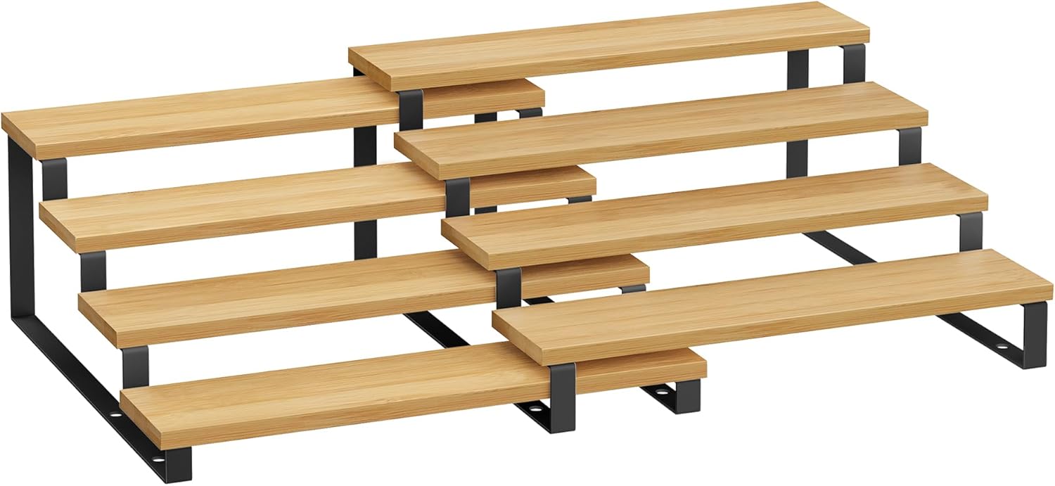 • 【FIND AT A GLANCE】With its specially designed tiered structure and each tier being 3" deep, this display riser ensures all your spice jars and items are clearly visible and easily accessible, preventing messes and keeping your kitchen organized