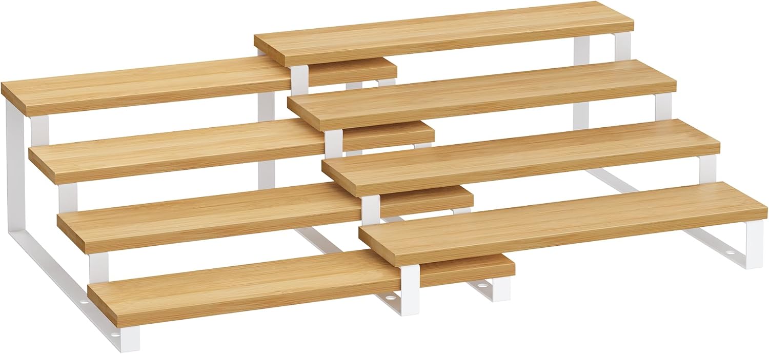 • 【FIND AT A GLANCE】With its specially designed tiered structure and each tier being 3" deep, this display riser ensures all your spice jars and items are clearly visible and easily accessible, preventing messes and keeping your kitchen organized