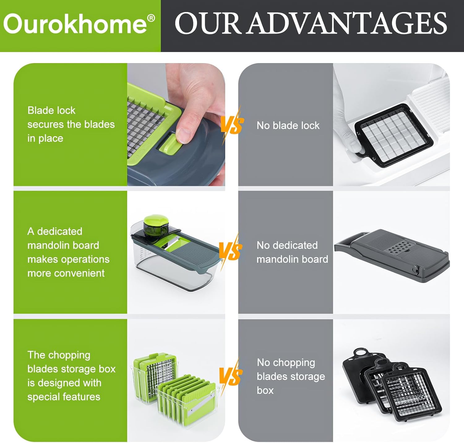 • A kitchen essential gadgets - Whether you're a novice cook or a seasoned pro, the Ourokhome 12 in 1 veggie chopper and spiralizer is a must-have in any kitchen. It's versatile, easy and safe to use and store, and it is a wise gifts choice for Christmas, new home, white elephant and more