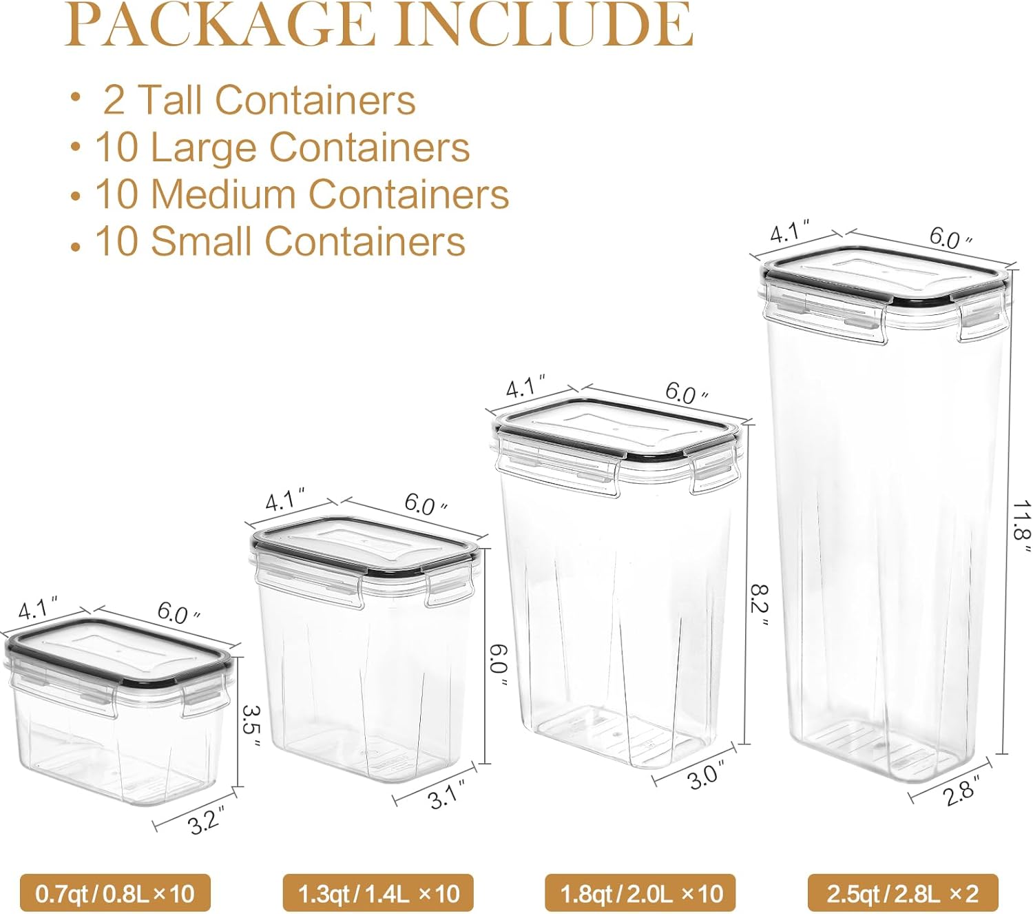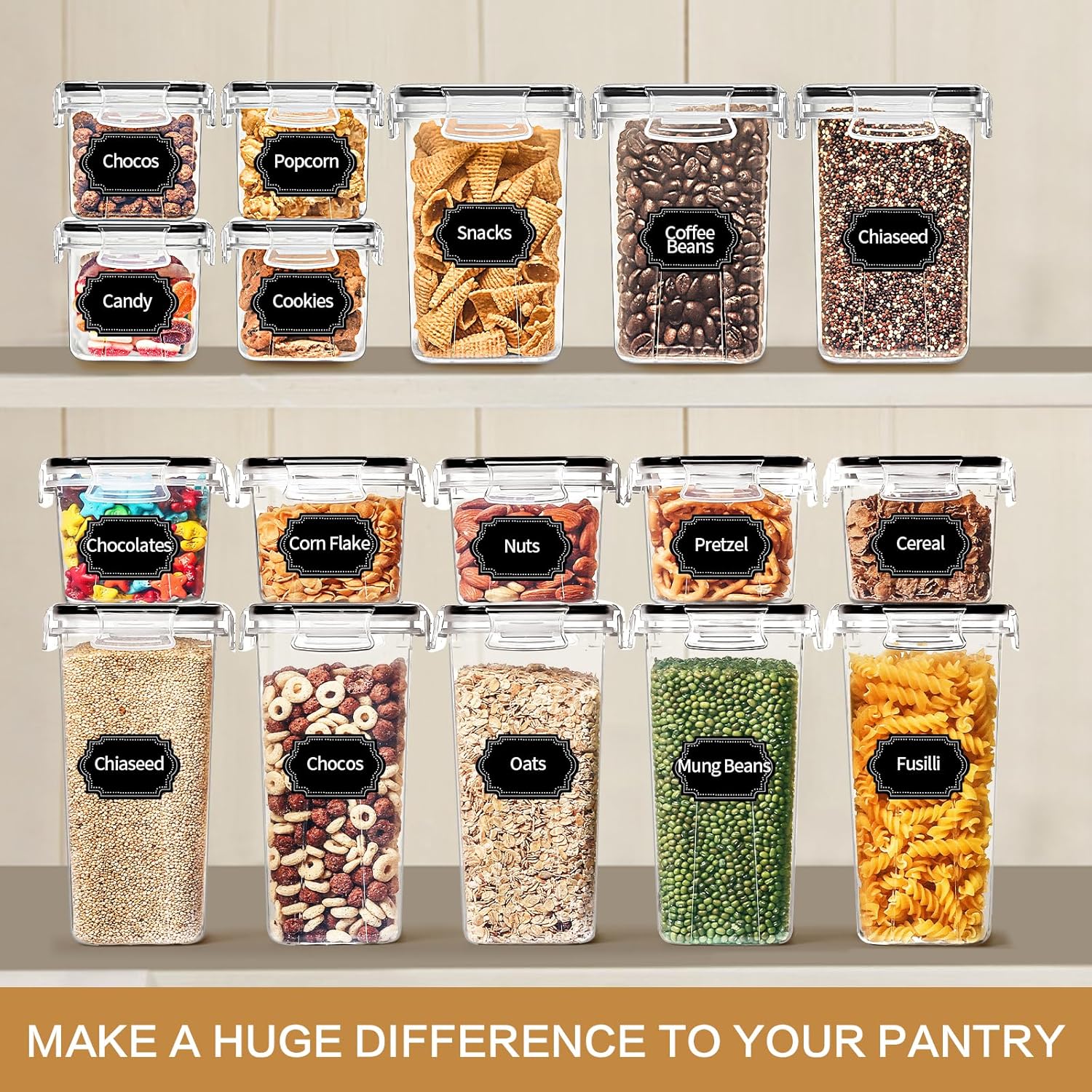 Skroam 32 PCS Airtight Food Storage Containers with Lids, Kitchen and Pantry Organizers and Storage, BPA Free, Plastic Food Storage Canisters for Flour, Sugar, and Cereal, Labels & Marker