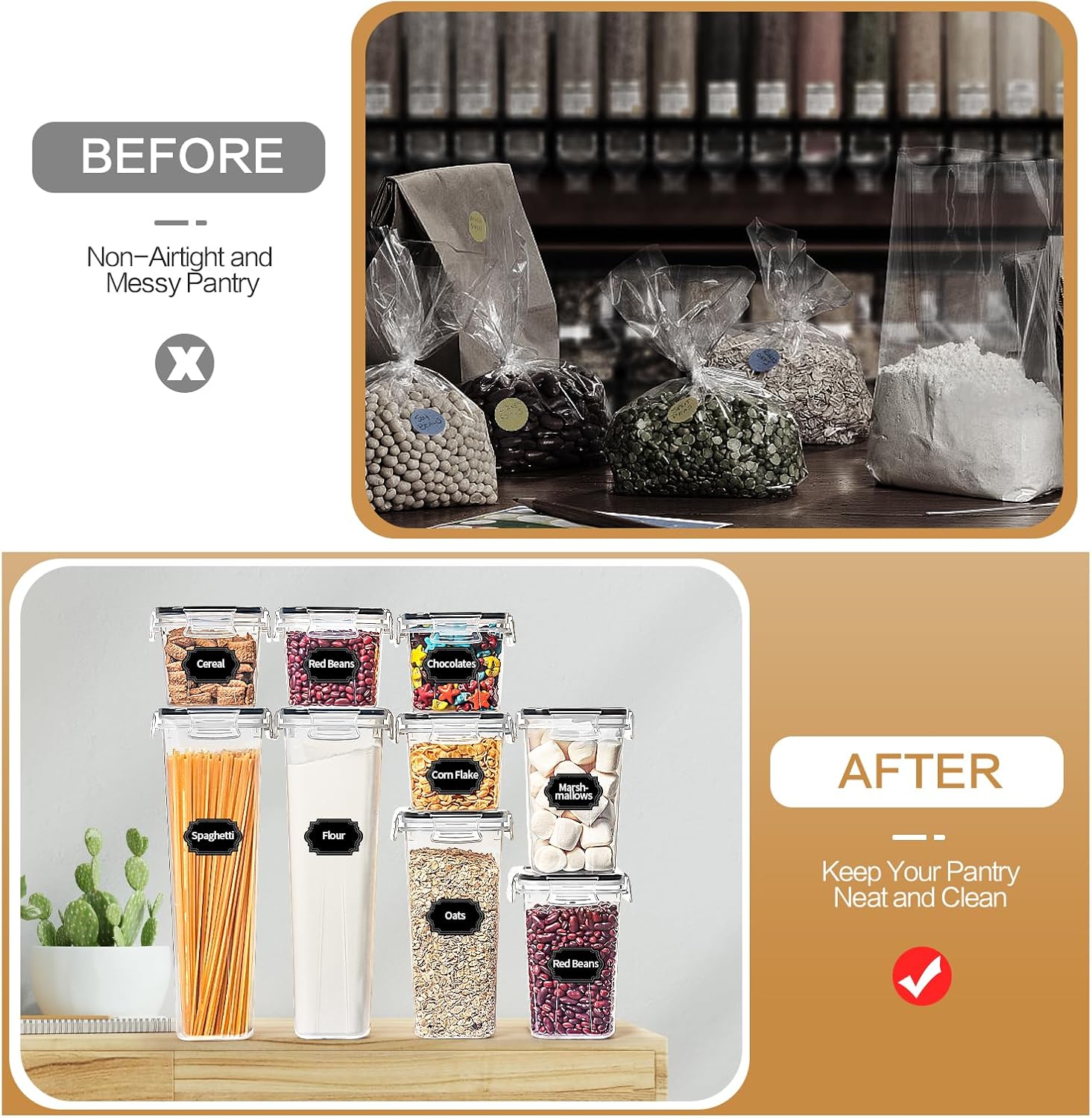 • Making Storing Easier: Skroam air tight sealable containers for food have an excellent design to minimize space, they are stackable and will easily fit into your pantry which enables you to get the kitchen organized and free up space. The kitchen storage containers are perfect for storing flour, sugar, spaghetti, rice, nuts, cereal, snacks, pasta, and more
