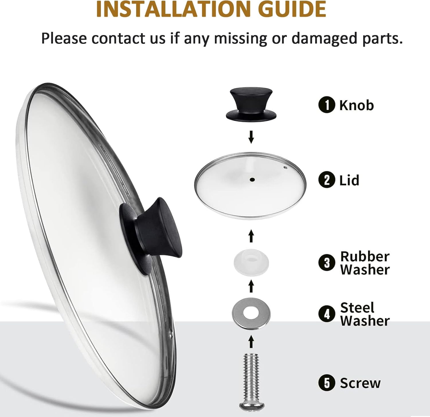 • ✔ TEMPERED GLASS & STAINLESS STEEL RIM – The glass lids are made of tempered glass,strong and durable. The edge of the lid is made with stainless steel material, make sure the safe cooking without rust (Please contact us if any broken during shipping)
