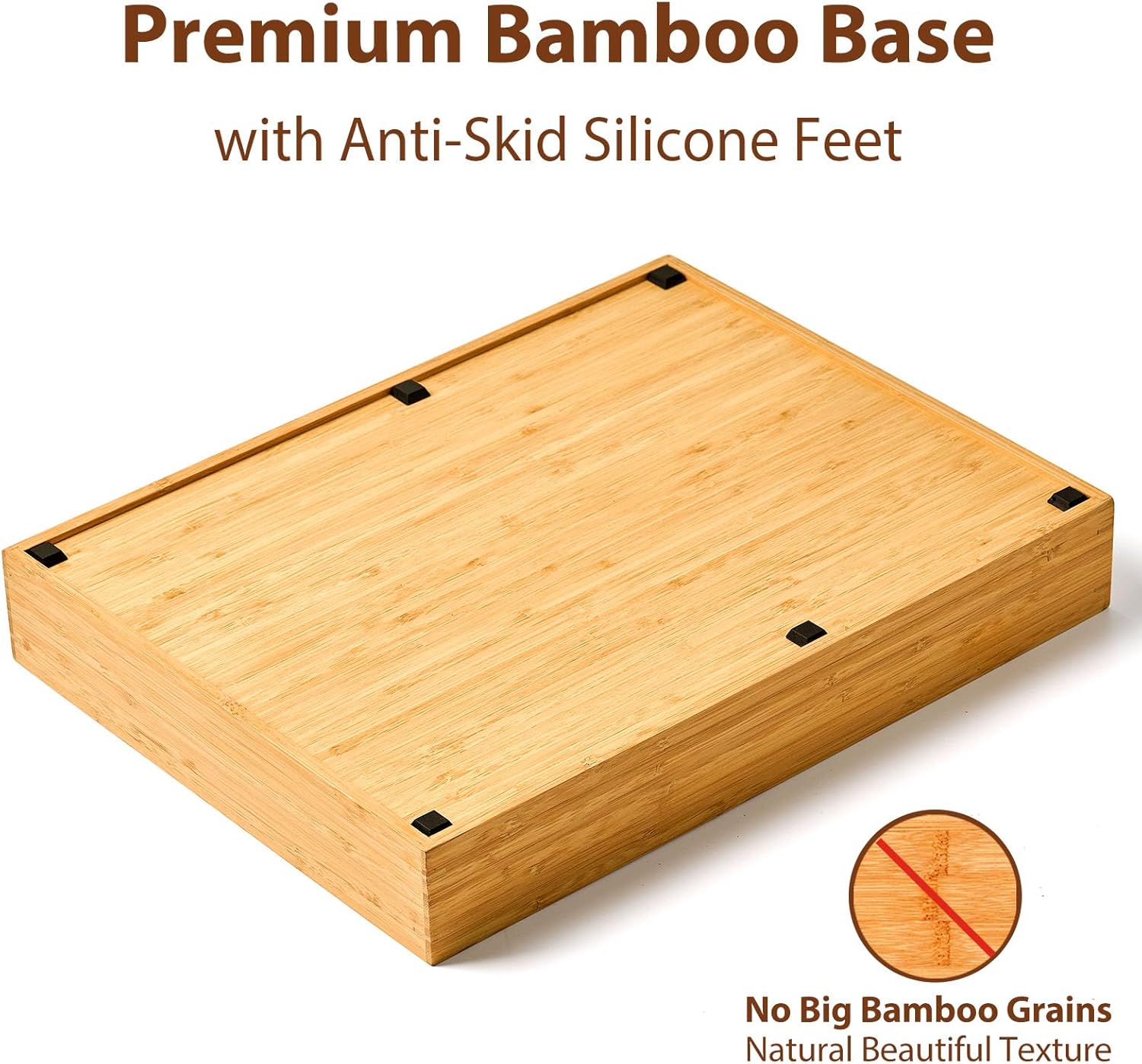 • 6 BIG ANTI-SKID SILICONE FEET: Premium silicone feet keep the bamboo trays immobile and quiet when pulling out and pushing back the drawer.