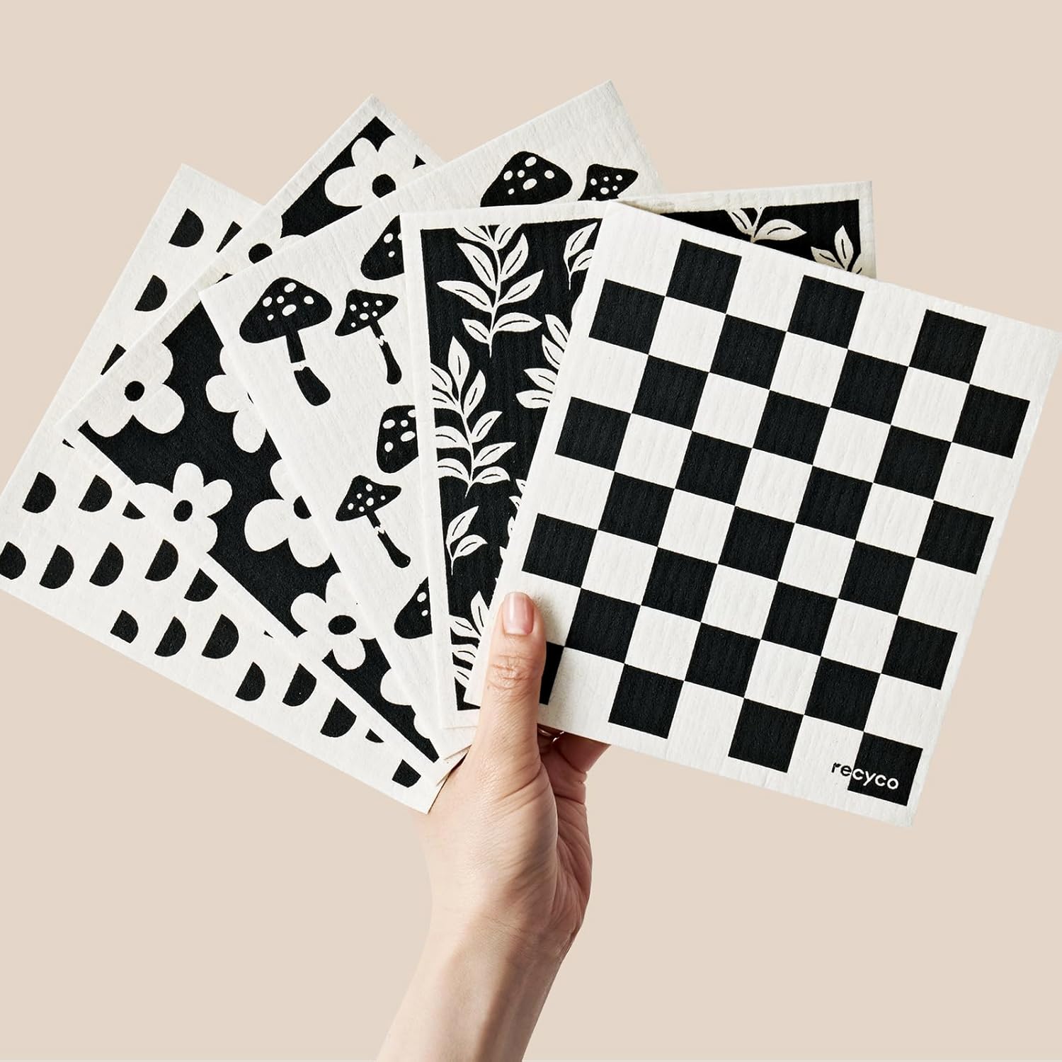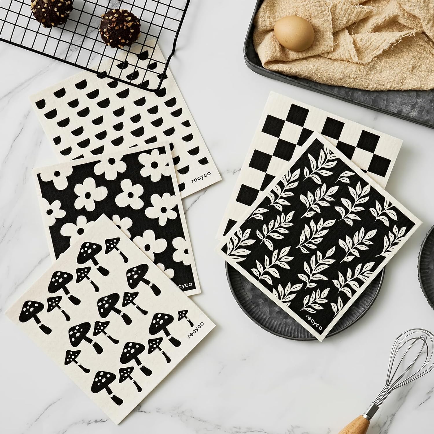 RECYCO Swedish Dishcloths for Kitchen | 5 Pack Mystic Meadows Washable Dish Rags | Cellulose Reusable Cleaning Paper Towels | Absorbent Counter Dish Cloth Sponge Kitchen Wipes, 8" L x 7" W