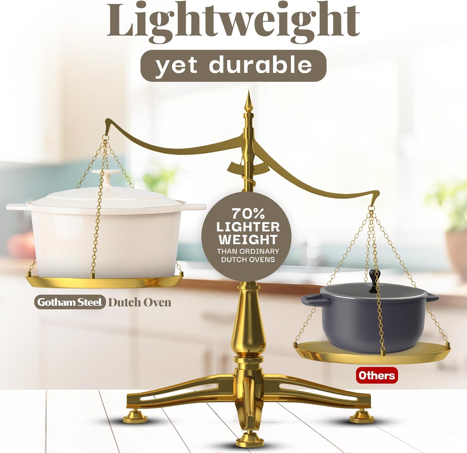 • DUTCH OVEN POT WITH LID: Take your cooking to the next level with the Gotham Steel Pastel Dutch Oven- The innovative lightweight aluminum construction takes modern cooking to the next level with improved performance, style, and durability. Pairing an ultra-nonstick surface with lightweight aluminum, this Dutch Oven Pot is ideal for sourdough bread baking, roasting meat, slow cooking stews and all kitchen tasks for an entire family.