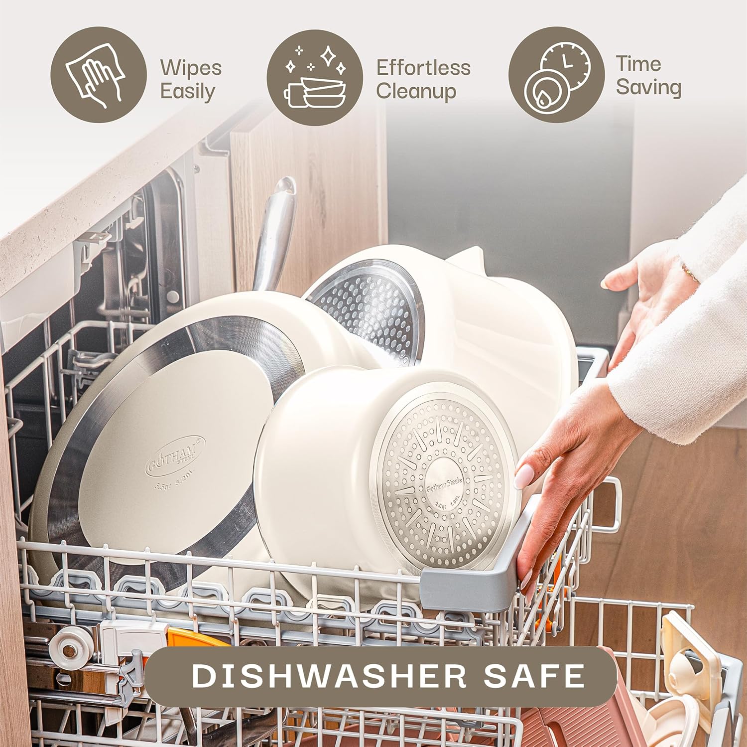 Gotham Steel 5 Qt Dutch Oven Pot with Lid, Nonstick Ceramic Dutch Oven Stock Pot, 10 in 1 Cooking Pots & Dutch Ovens for Bread Baking, Lightweight Oven & Dishwasher Safe – Cream