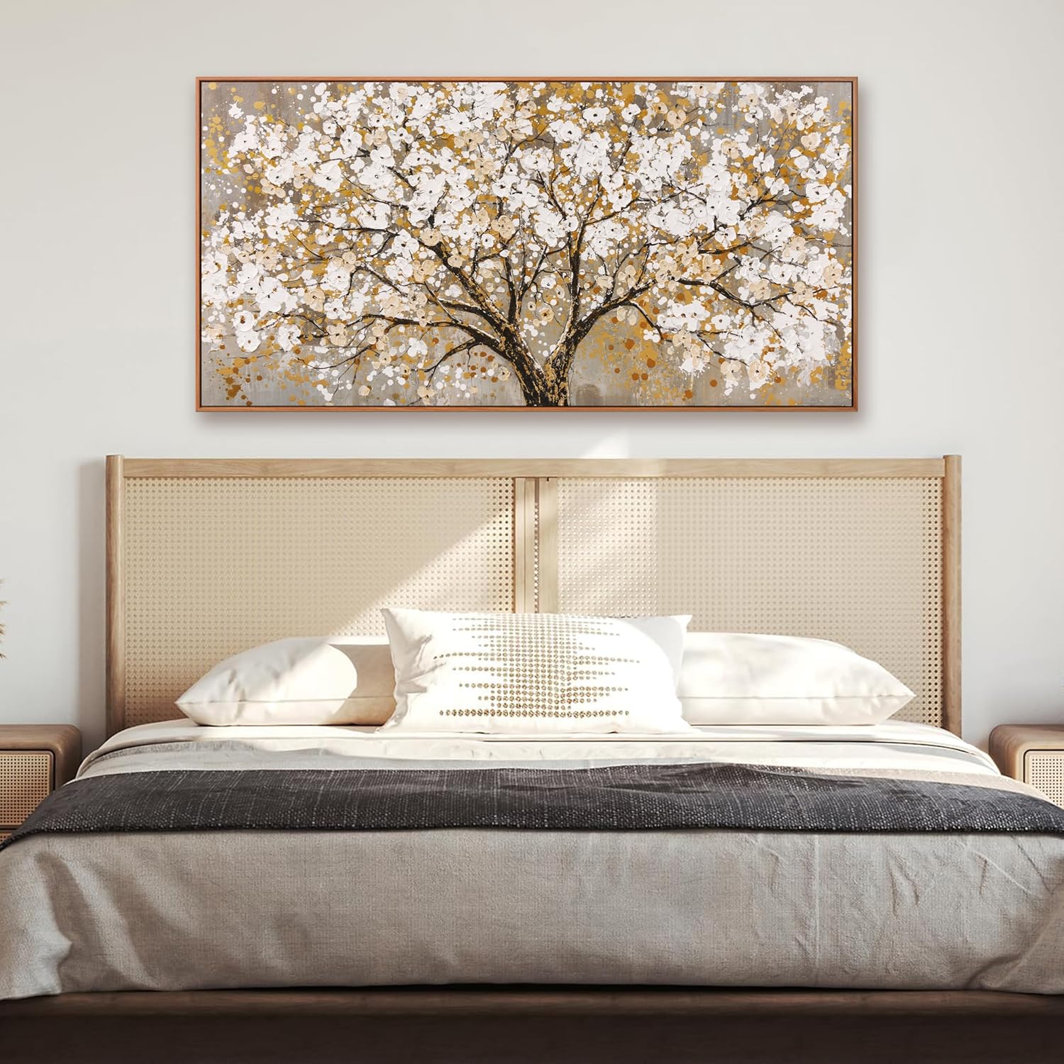 Framed Wall Art Print Gold Tree Of Life Modern Artwork Canvas Painting Gold Tree Pictures Wall Art Decor For Living Room Bedroom Dining Room Home Office Decor 20" X 40"