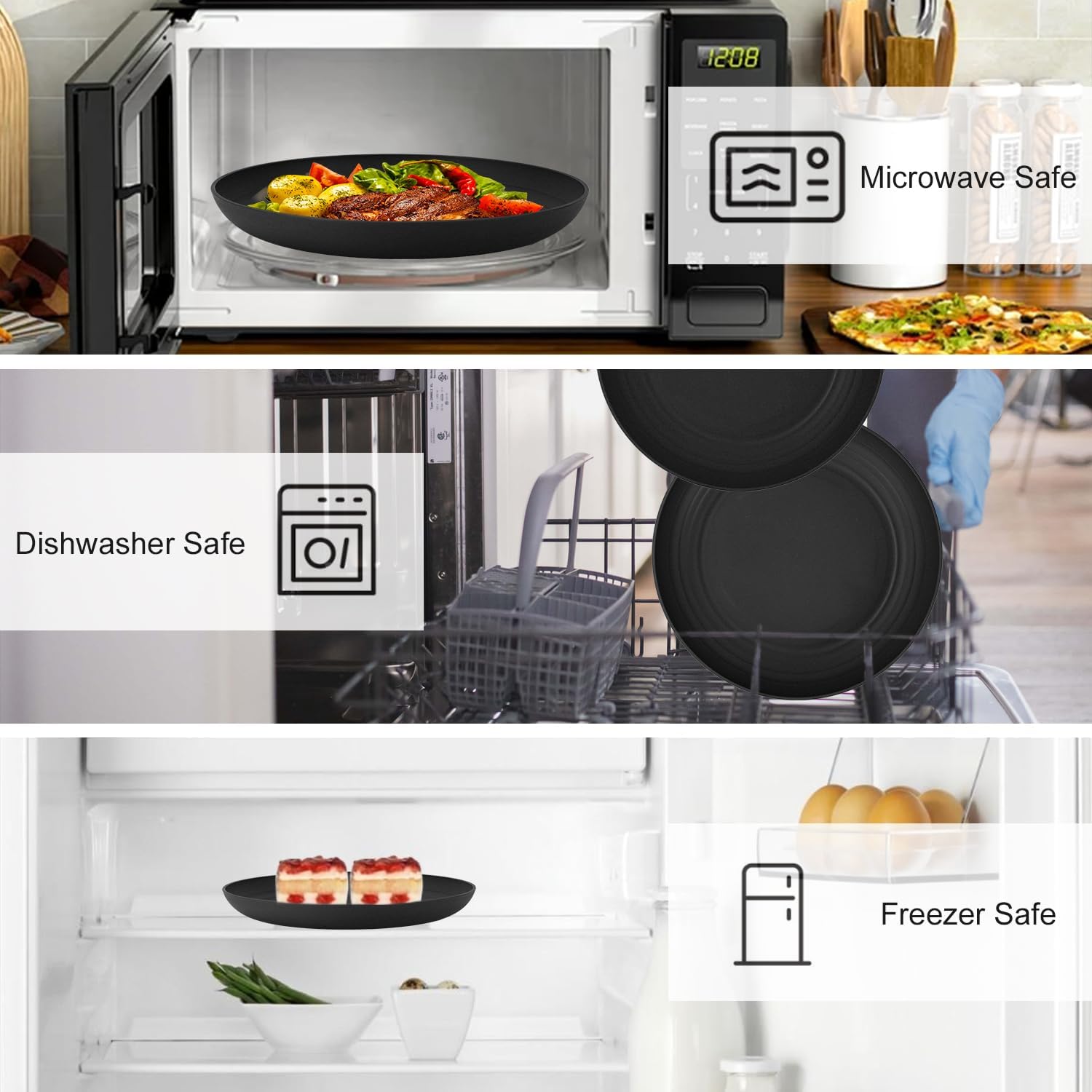 8 Pcs 11 Inch Wheat Straw Plates, Unbreakable Dinner Plates Reusable, Microwave Safe for Kitchen, Set of 8 (Black)