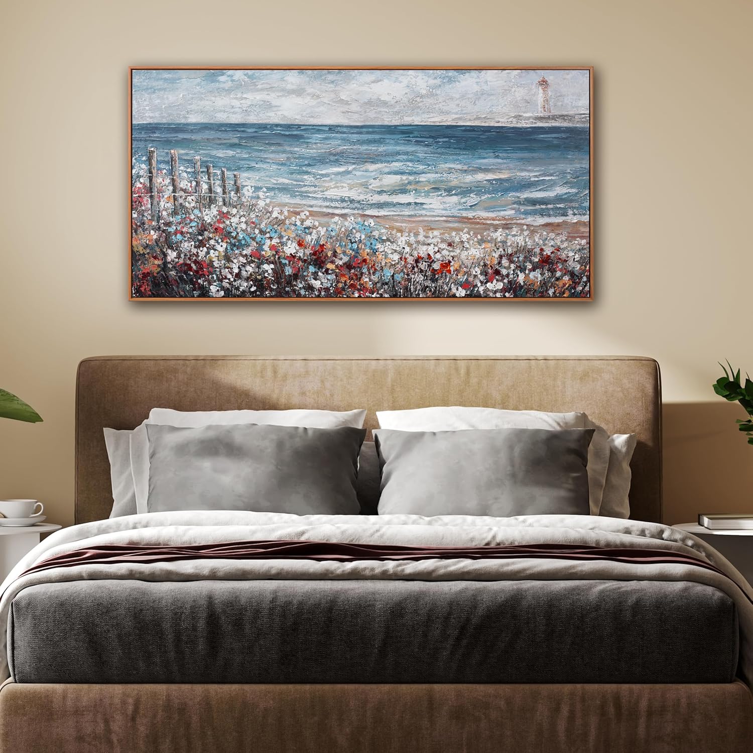 Wall Art Decor Canvas Print Painting Blue Sea Colorful flowers Landscape Picture Artwork Framed Wall Decor For Living Room Bedroom Living Room And Apartment 20 x 40 Inch