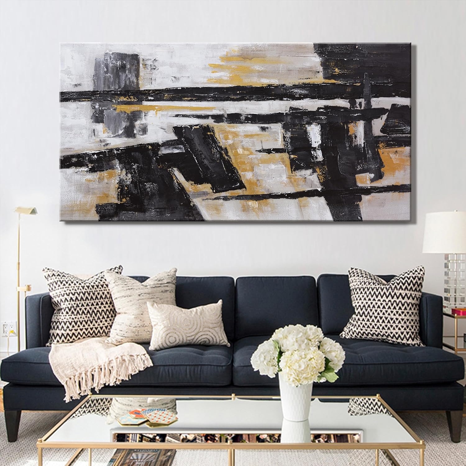 Abstract Wall Art Wall Decor Bedroom Pictures Artwork Canvas Wall Art Black And Gold Artwork Large Size Modern Painting Wall Decoration Pictures For Living Room Home Kitchen Office 30 x 60 Inch