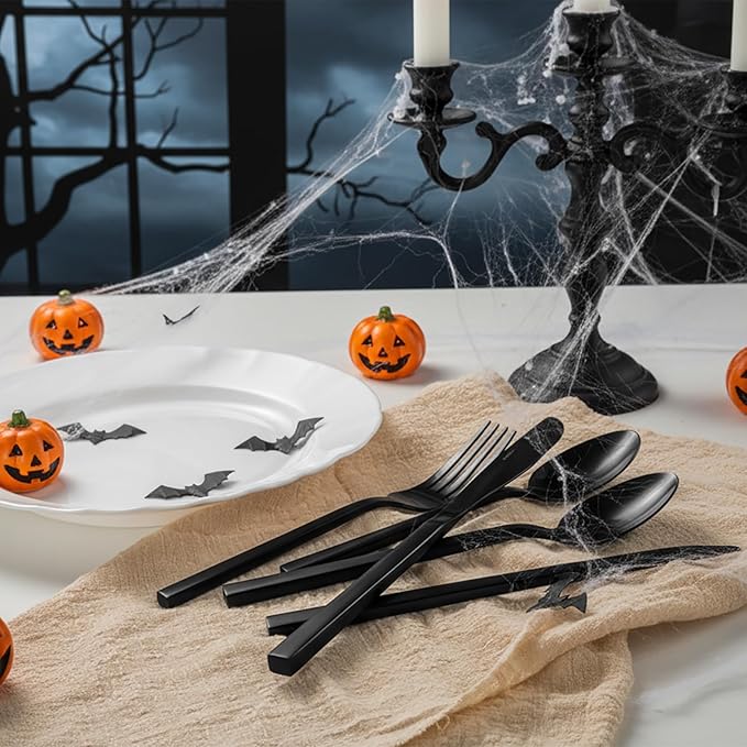 • DESIGN AND APPEARANCE: Classic square handle shape with mirror finish, natural and elegant design.Smooth and silk surface without grain, easy to clean and care in daily use. Crafted forged process, strong and durable,so that the flatware set has a thicker texture