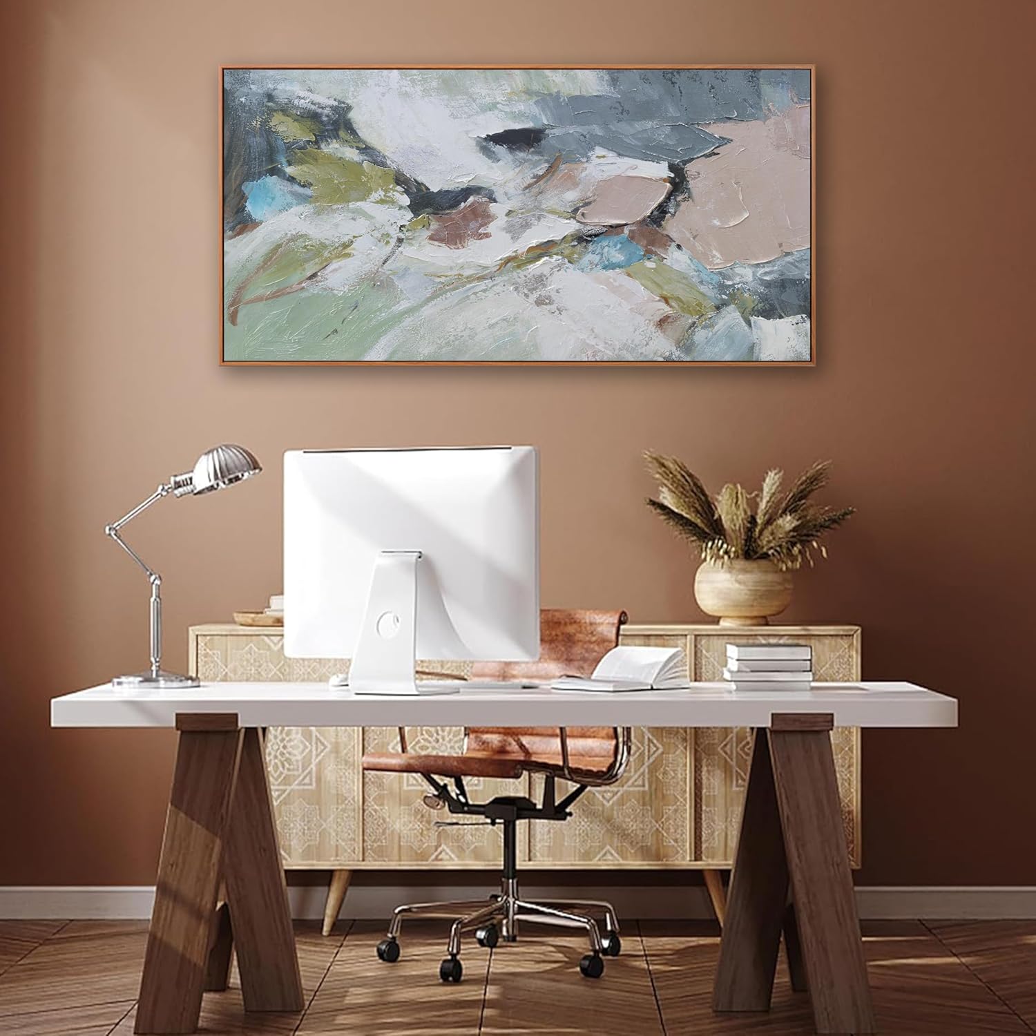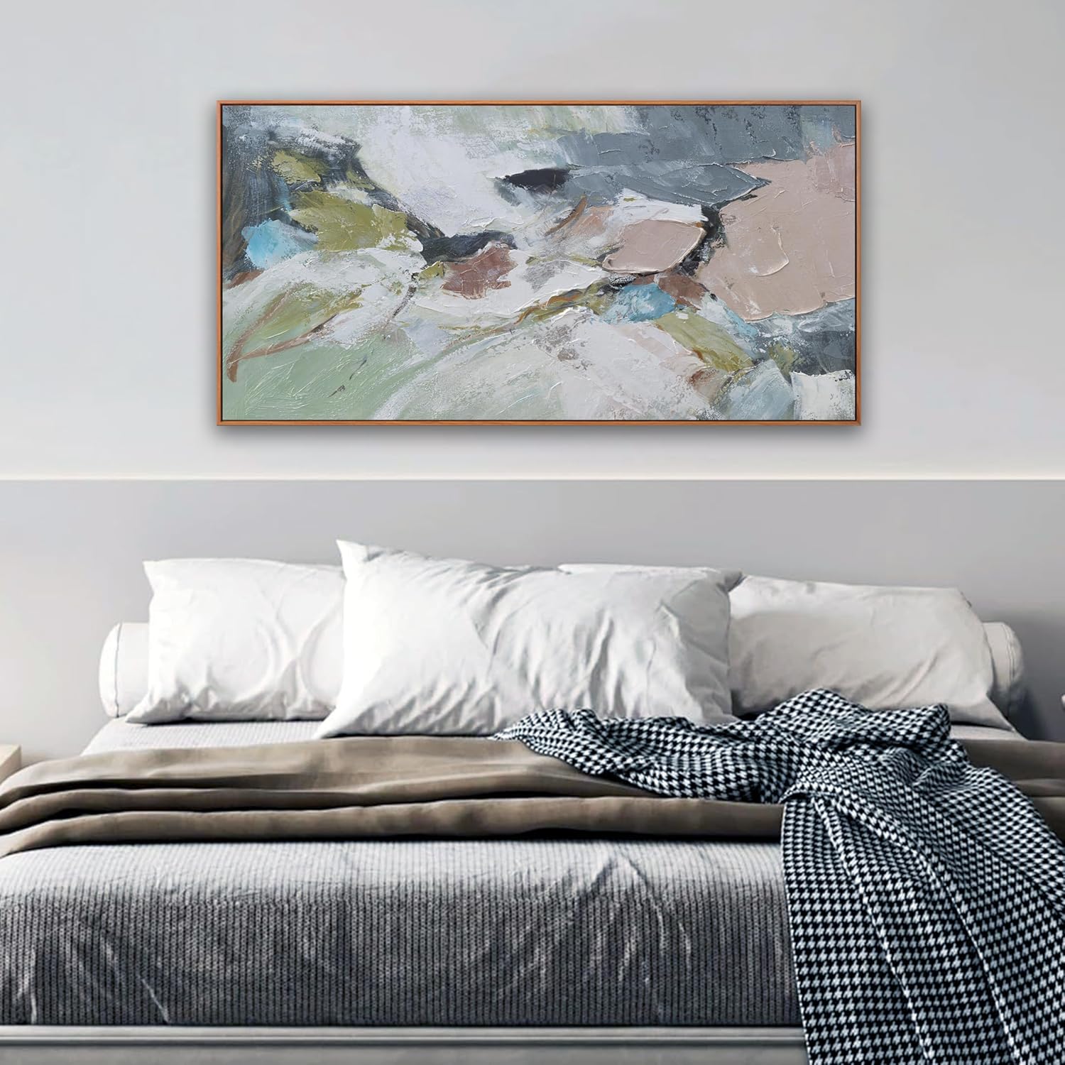 Abstract Wall Art Canvas Pink Green Abstract Wall Decor Paintings 20"x 40" Framed Colorful Modern Artwork for Living Room Bedroom Kitchen